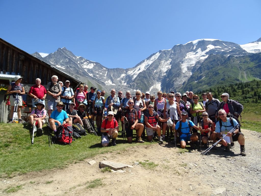Randonnée en partant du hameau de La Frasse en direction du chalet du Truc puis des chalets de Miage en empruntant le sentier du tour du Mont Blanc.