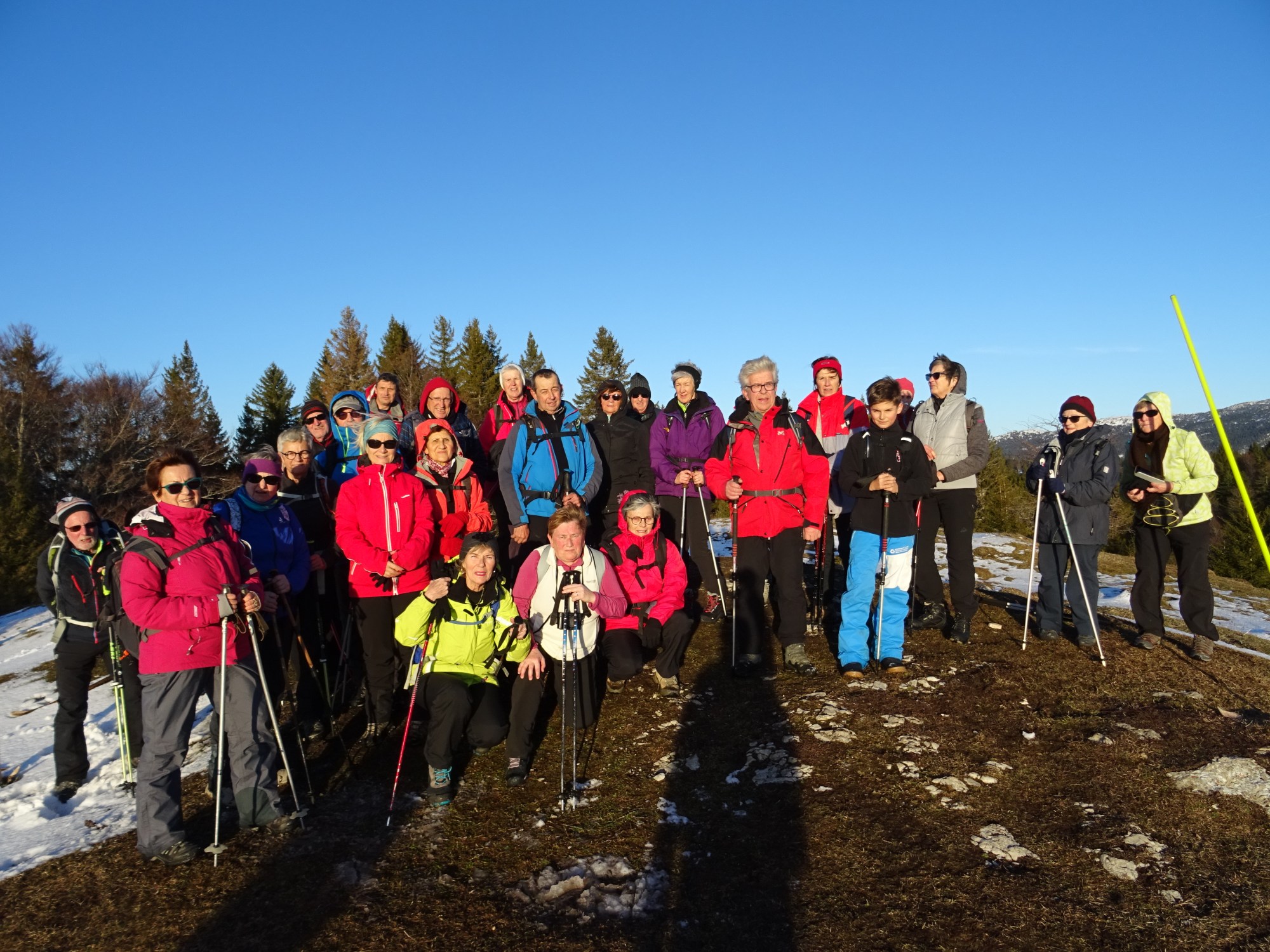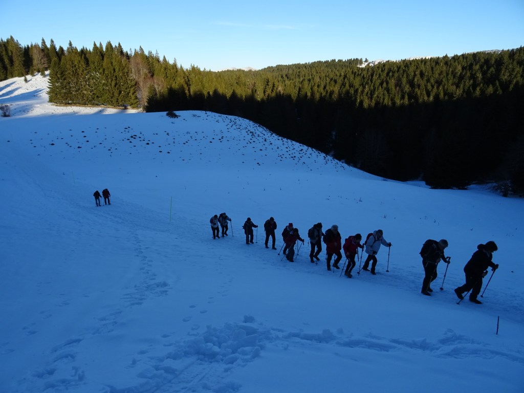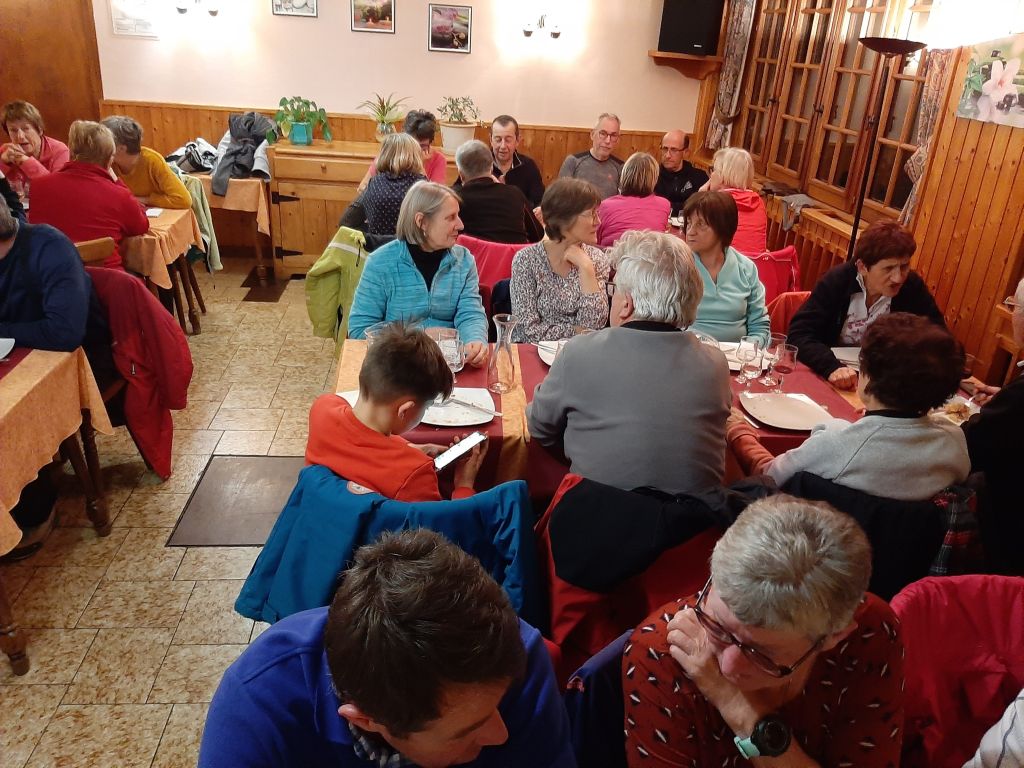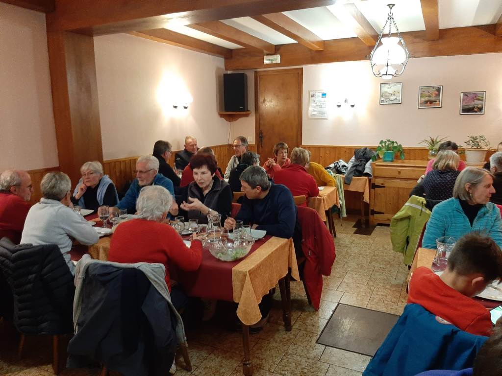 Des groupes se sont formés pour randonner autour du village de La Pesse. La neige nous l’avons cherché et finalement les raquettes sont restées dans le car. Mais au final, le plus important c’est de rendez-vous chez Burdet avec une bonne morbiflette !