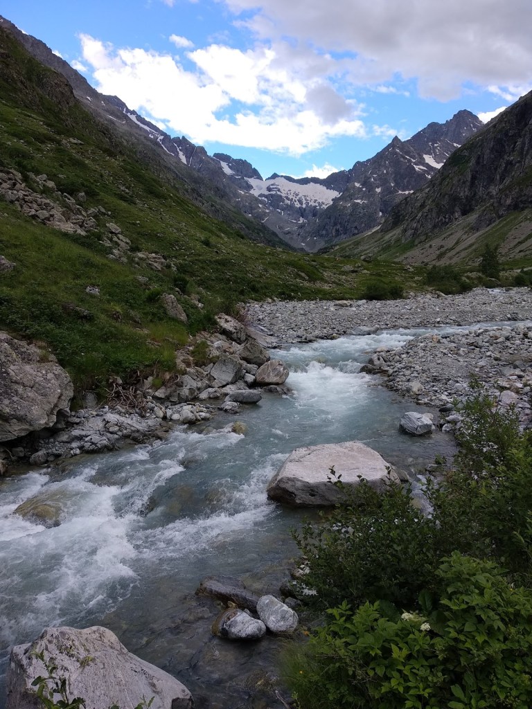 Départ de Saint Christophe en Oisans, dernier village habité à l’année, de cette vallée. Descente jusqu’au torrent du Vénéon puis remontée sur le refuge de l’Alpe du Pin (1805 m). Traversée sauvage jusqu’au vallon de Mariande, nouvelle descente puis remontée sur celui de la Muande jusqu’à rejoindre notre refuge pour la nuit.