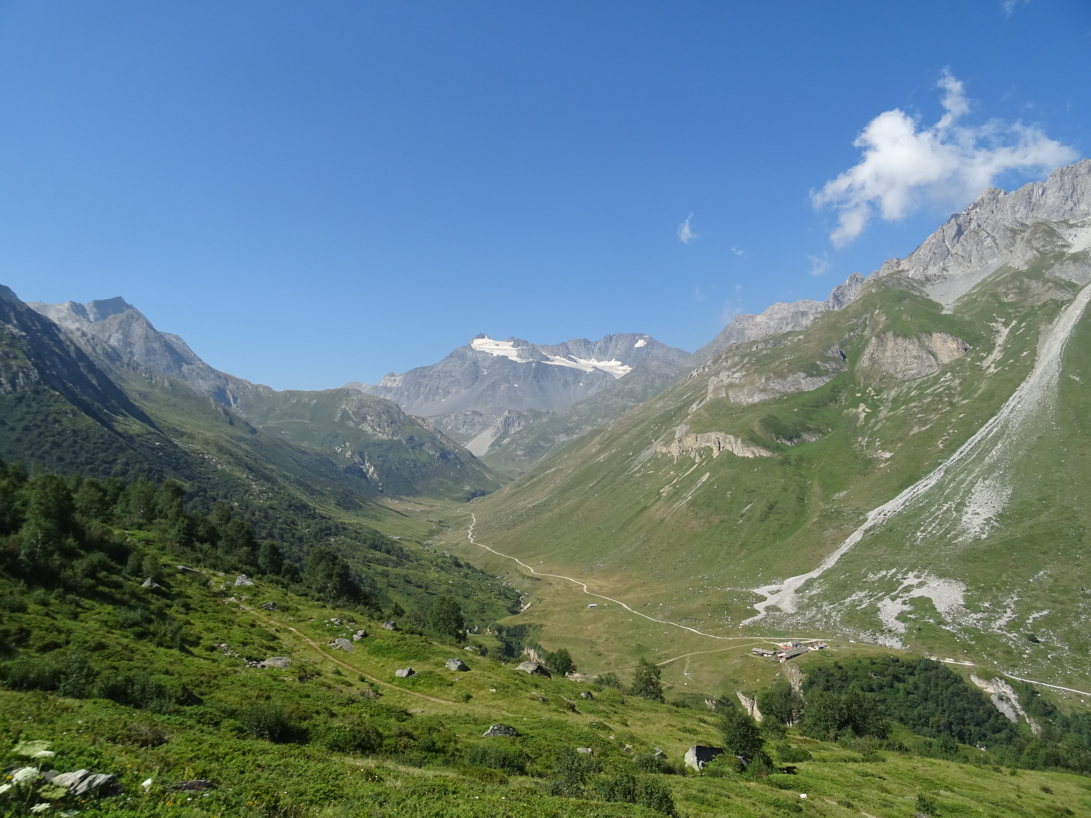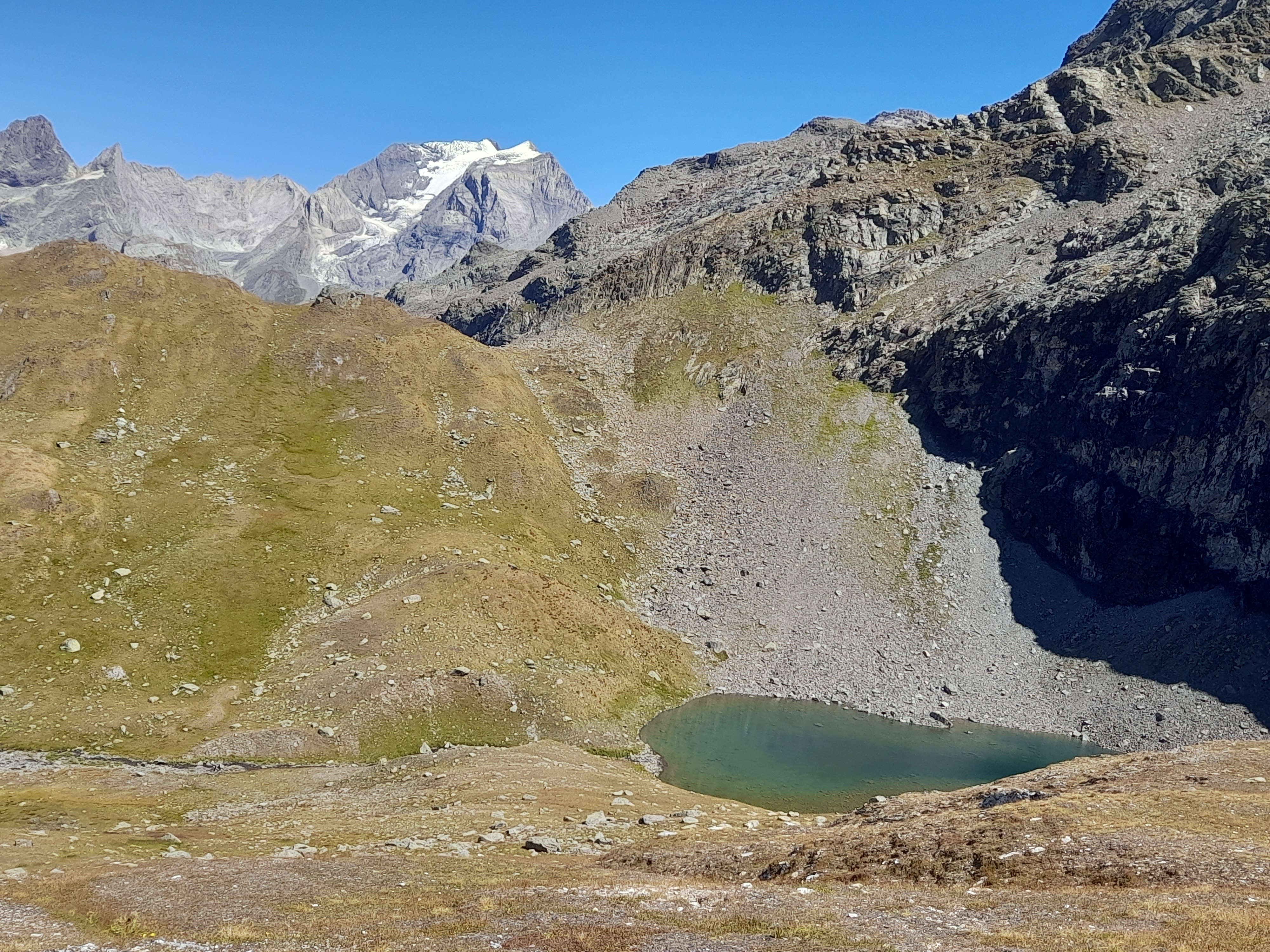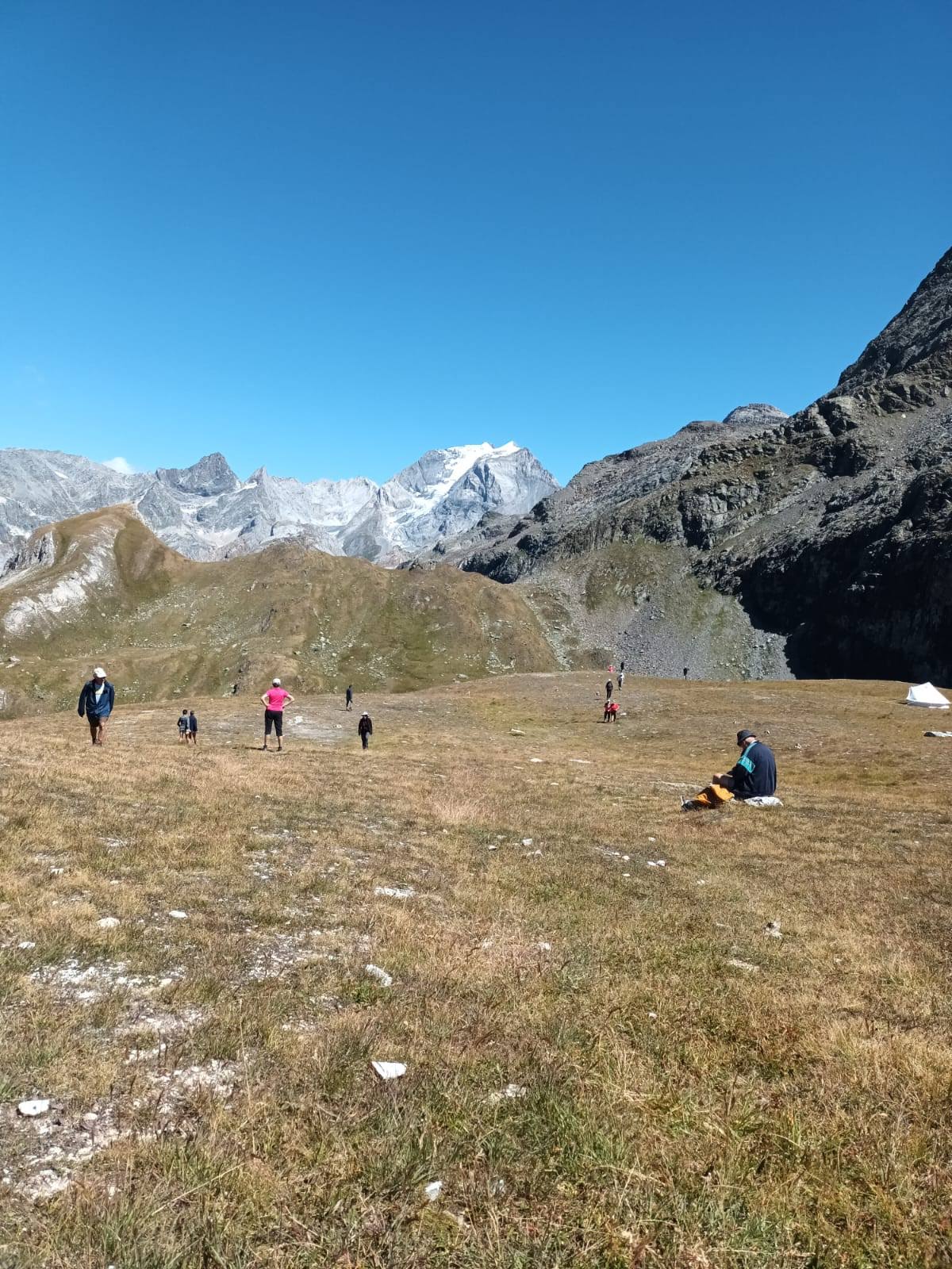 Pic nique devant un panorama exceptionnel avec la Grande Casse et son glacier saupoudré de neige récemment tombée.