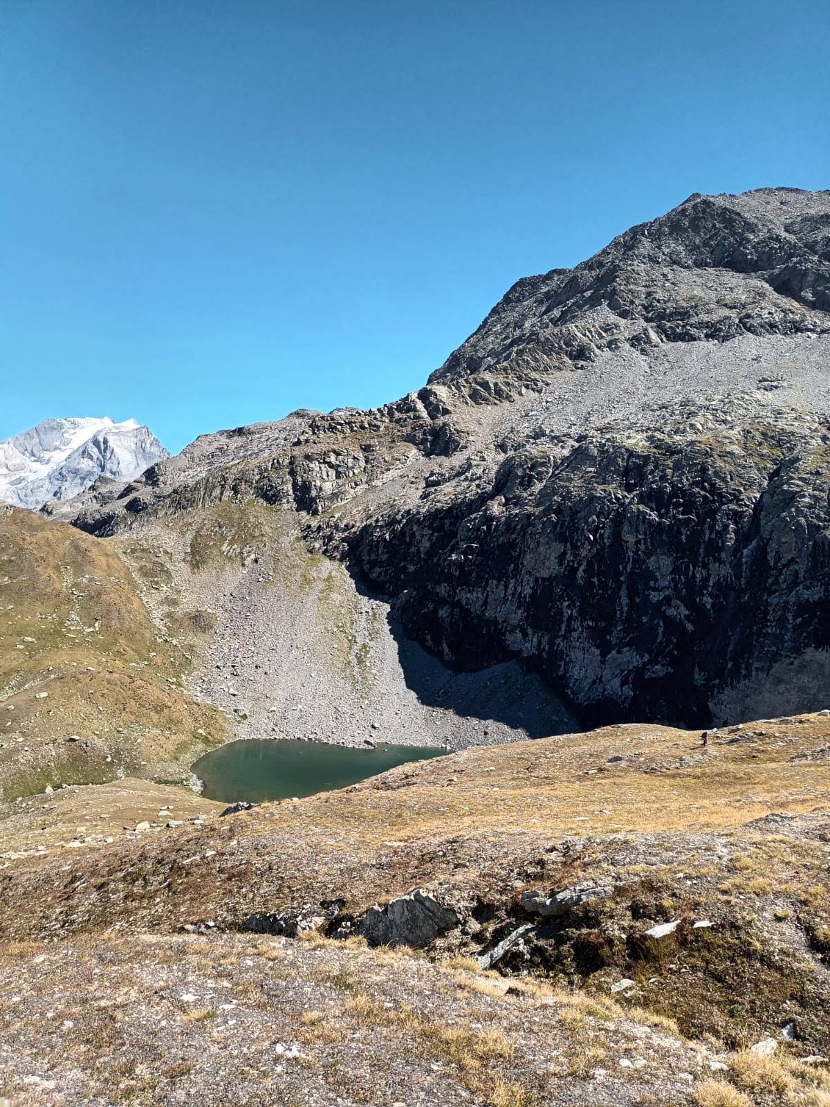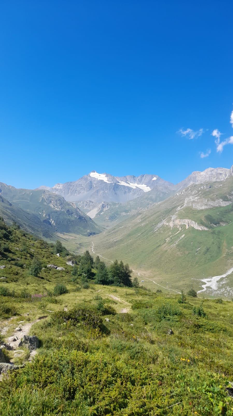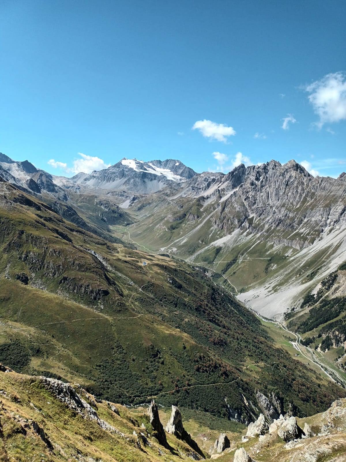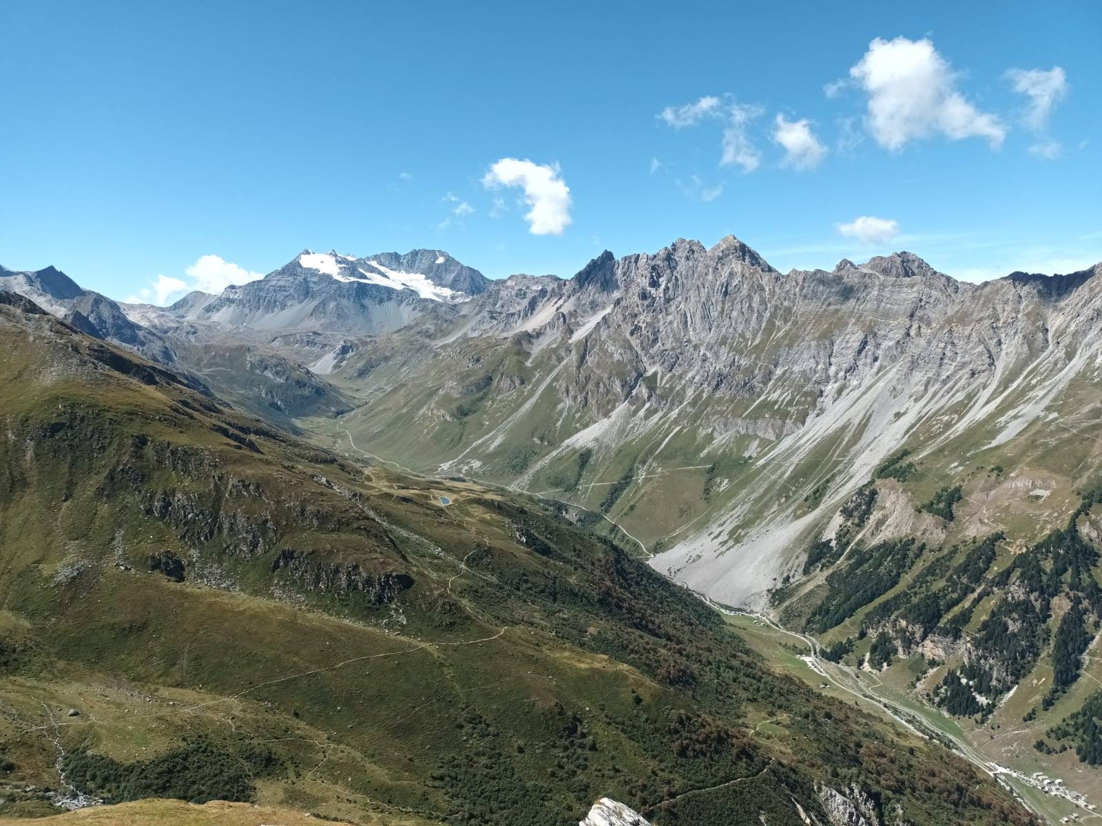 Pic nique devant un panorama exceptionnel avec la Grande Casse et son glacier saupoudré de neige récemment tombée.