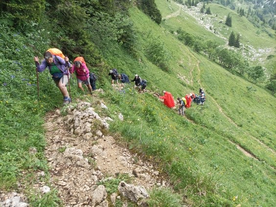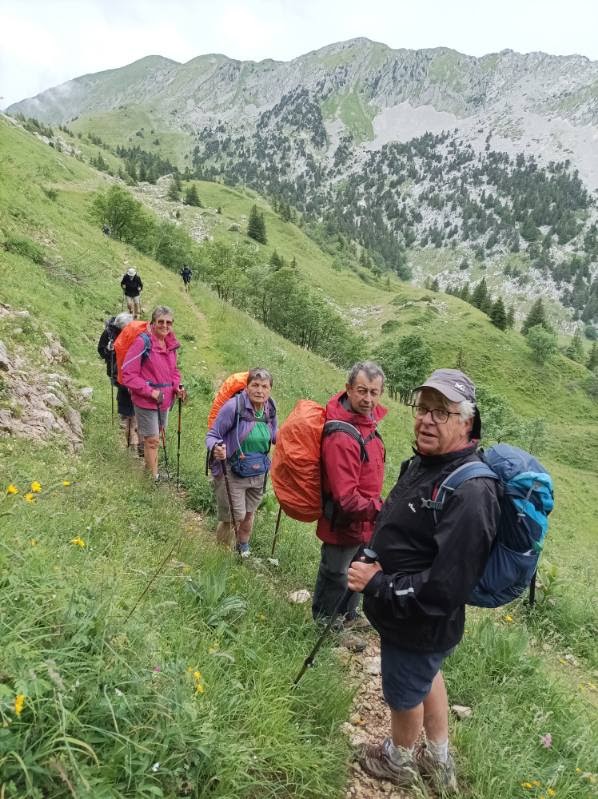 Raide montée jusqu’au col de la « Grande Vache ». Le 1er groupe a atteint le sommet tandis que l’autre est resté au pied de la dernière pente et est retourné au départ par le col « de la Petite Vache ».
