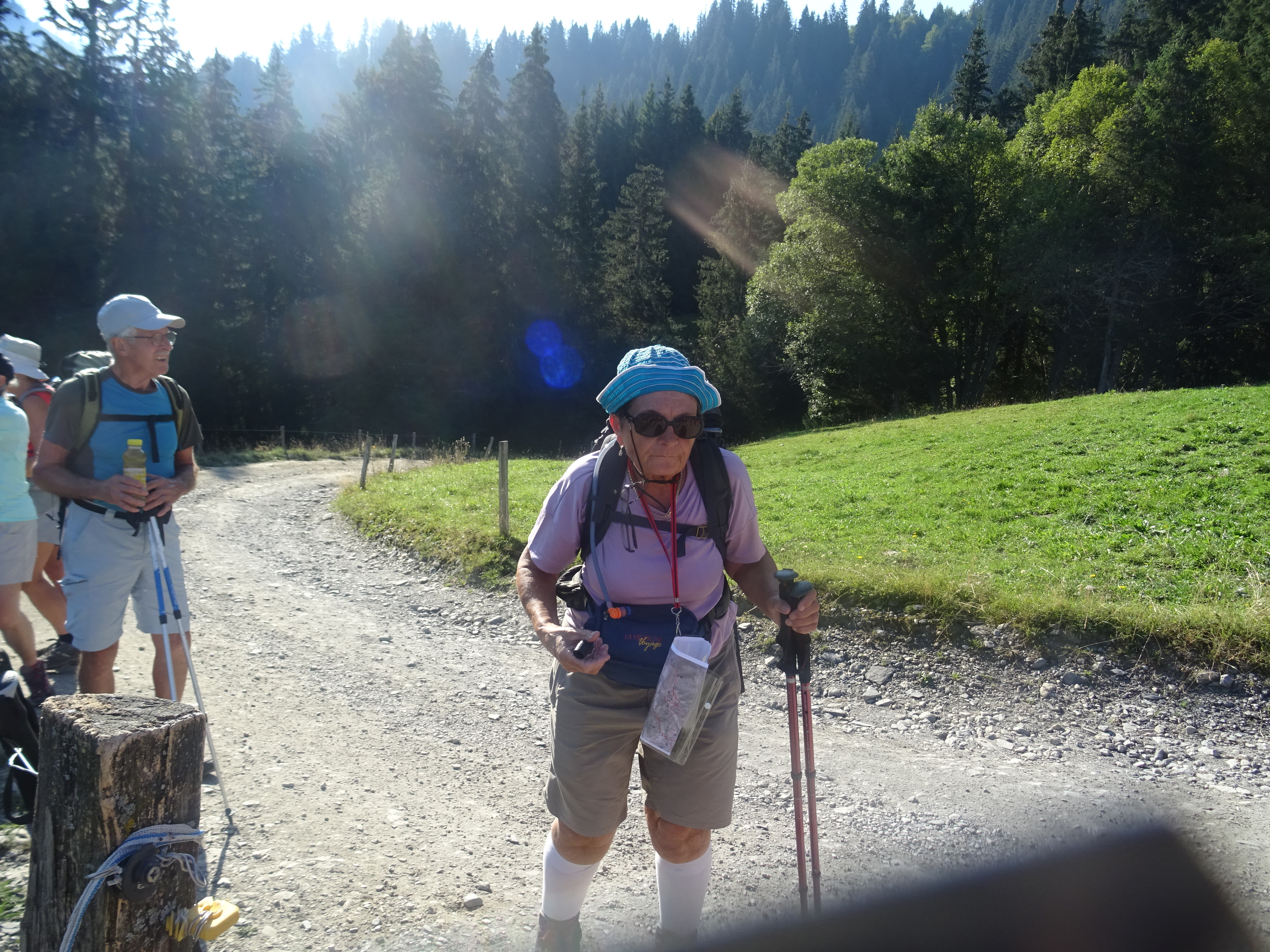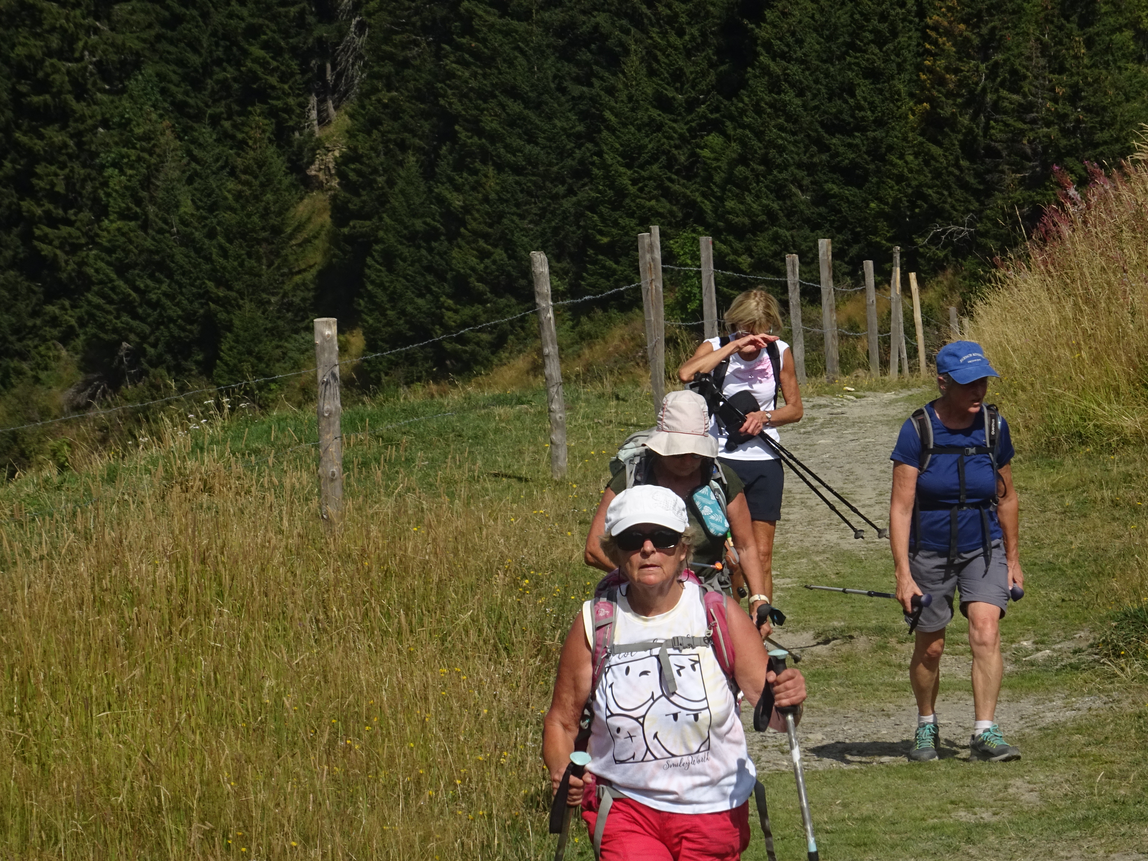 Sous un soleil radieux et une température de 25 degrés, 50 randonneurs divisés en deux groupes ont cheminésen partie sur du chemin forestier.