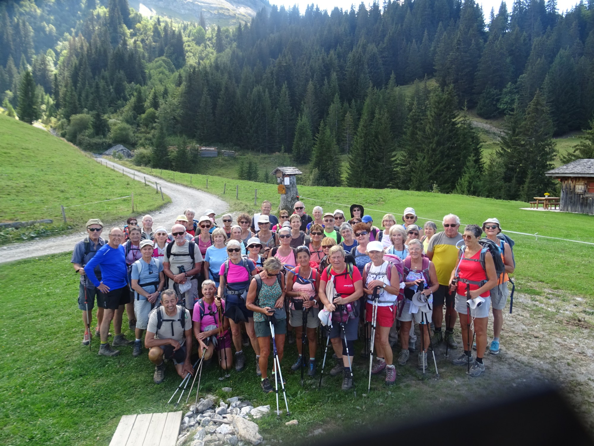Sous un soleil radieux et une température de 25 degrés, 50 randonneurs divisés en deux groupes ont cheminésen partie sur du chemin forestier.