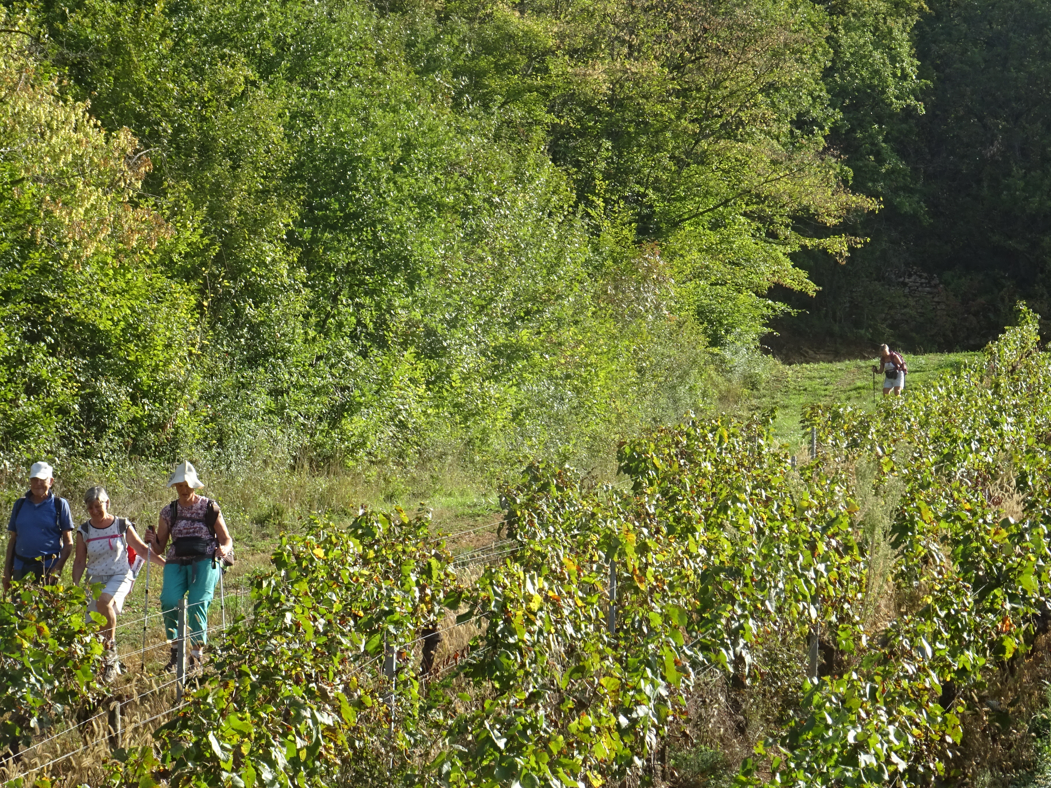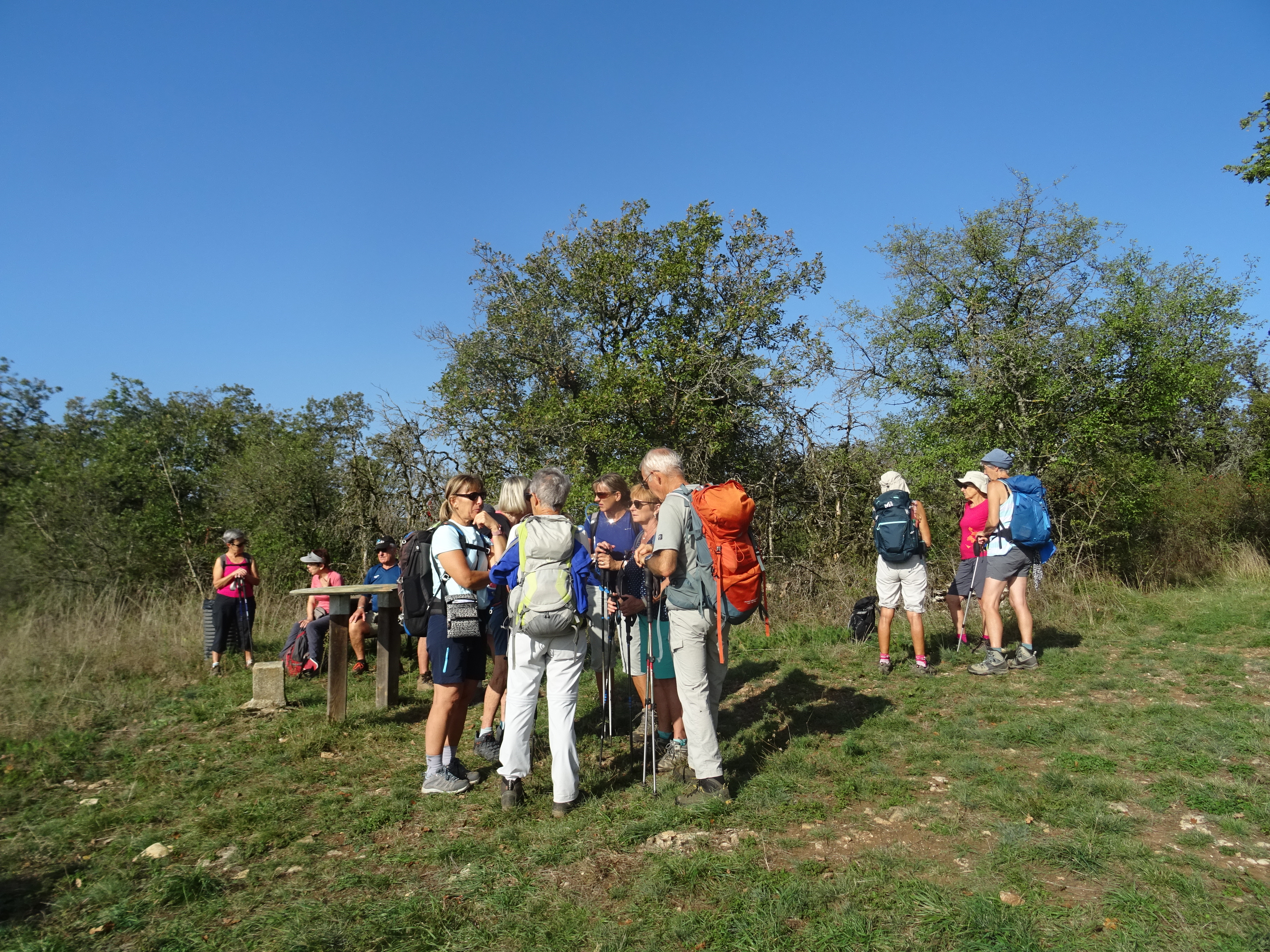 Rando Saint Martin fort de 47 participants a démarré son programme automnal dans une ambiance plutôt estivale dans le Mâconnais. Sous un beau soleil, les randonneurs partis du centre du village d’Azé ont parcouru 17 km sur les collines environnantes couvertes de vignes et de forêts, grappillant ça et là quelques grumes de raisins laissés par les vendangeurs. Retour sur la place du village ou la collation sous les platanes fut appréciée.