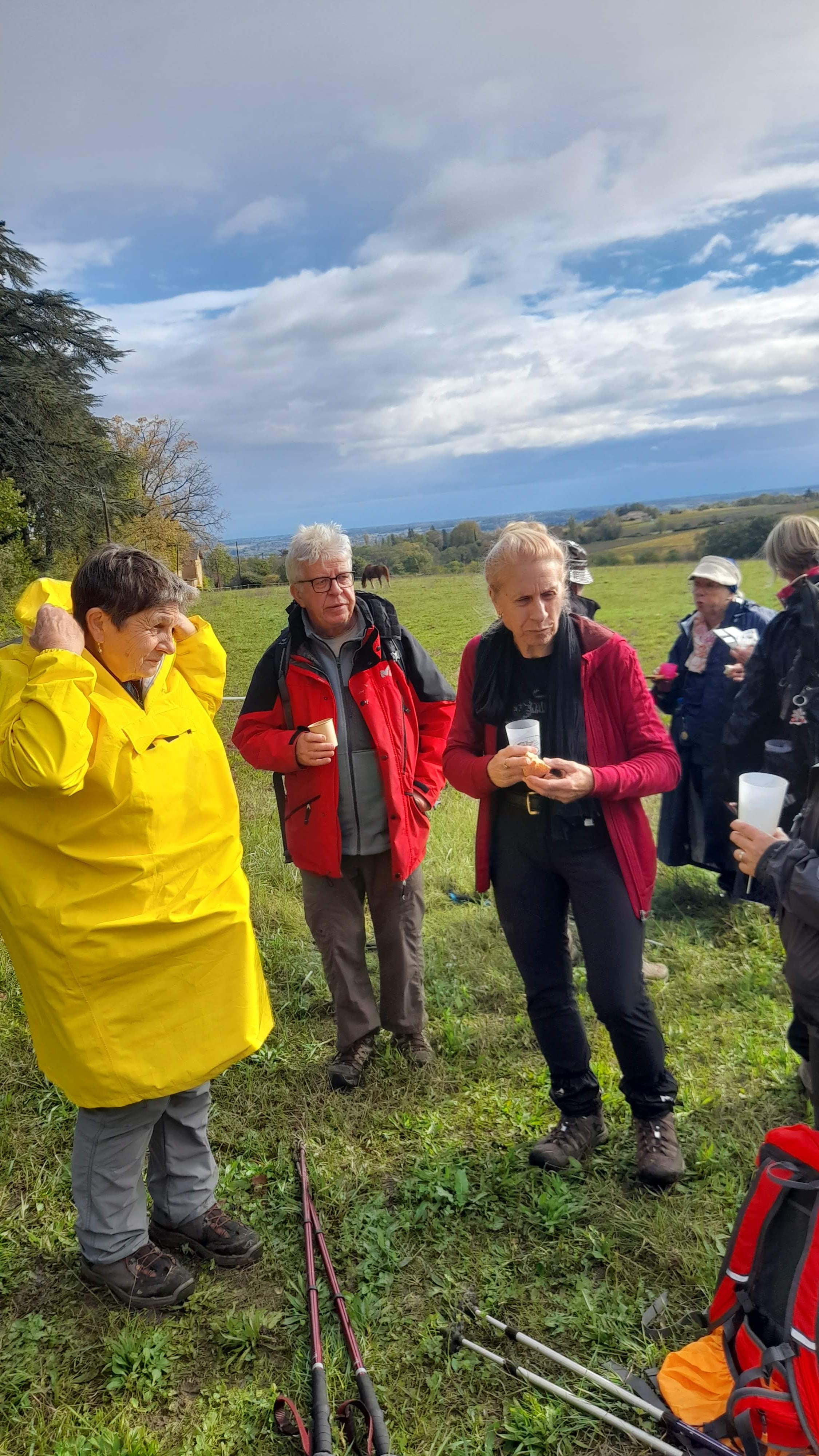 25 randonneurs pour une randonnée organisée par le comité d’animation de Denicé dans le Beaujolais. Matinée pluvieuse puis en sortant du ravitaillement installée dans une ancienne chapelle, le soleil nous a permis d’admirer les belles couleurs du vignoble de cette belle région qu’on nomme « Les pierres dorées »
