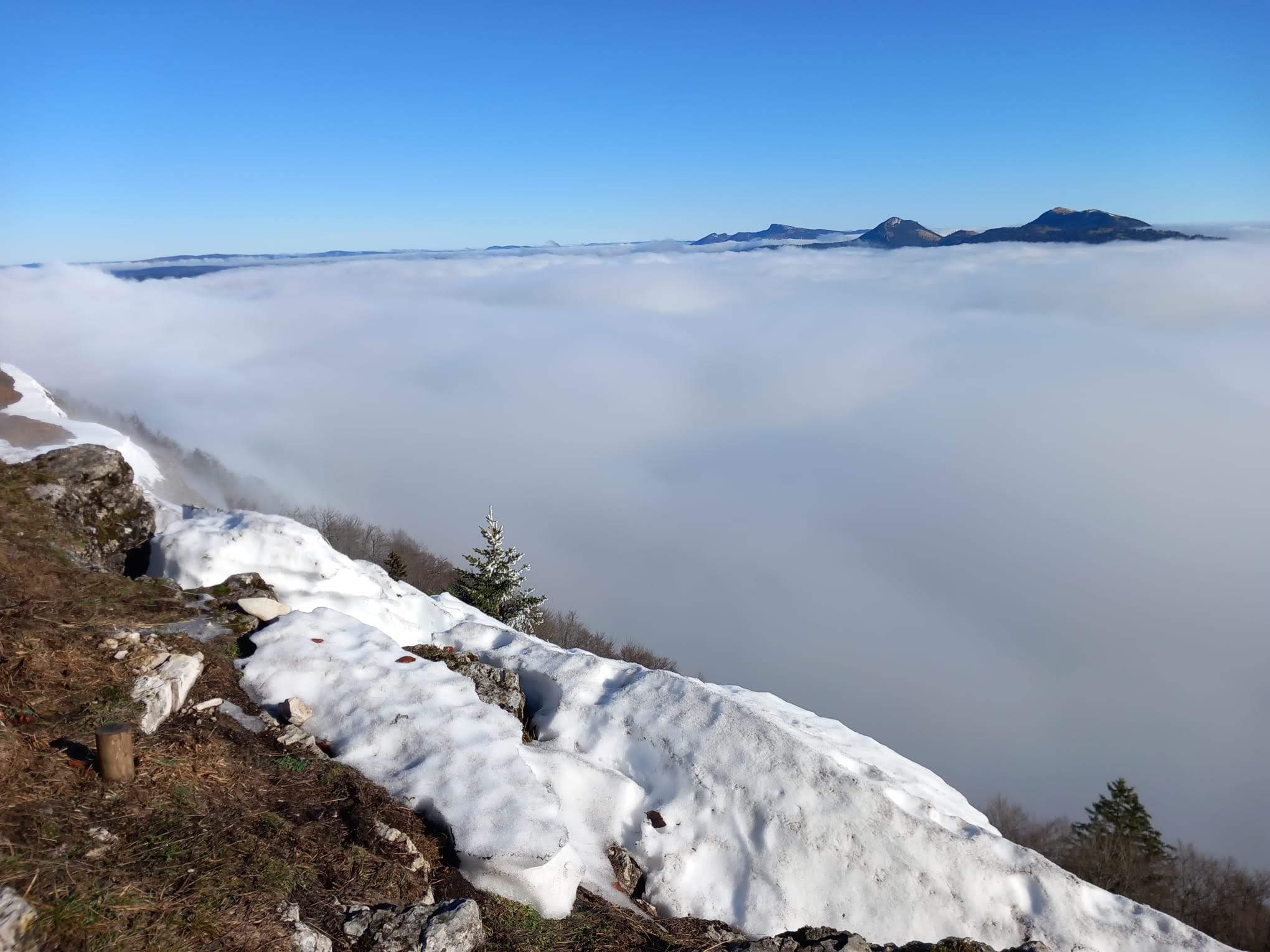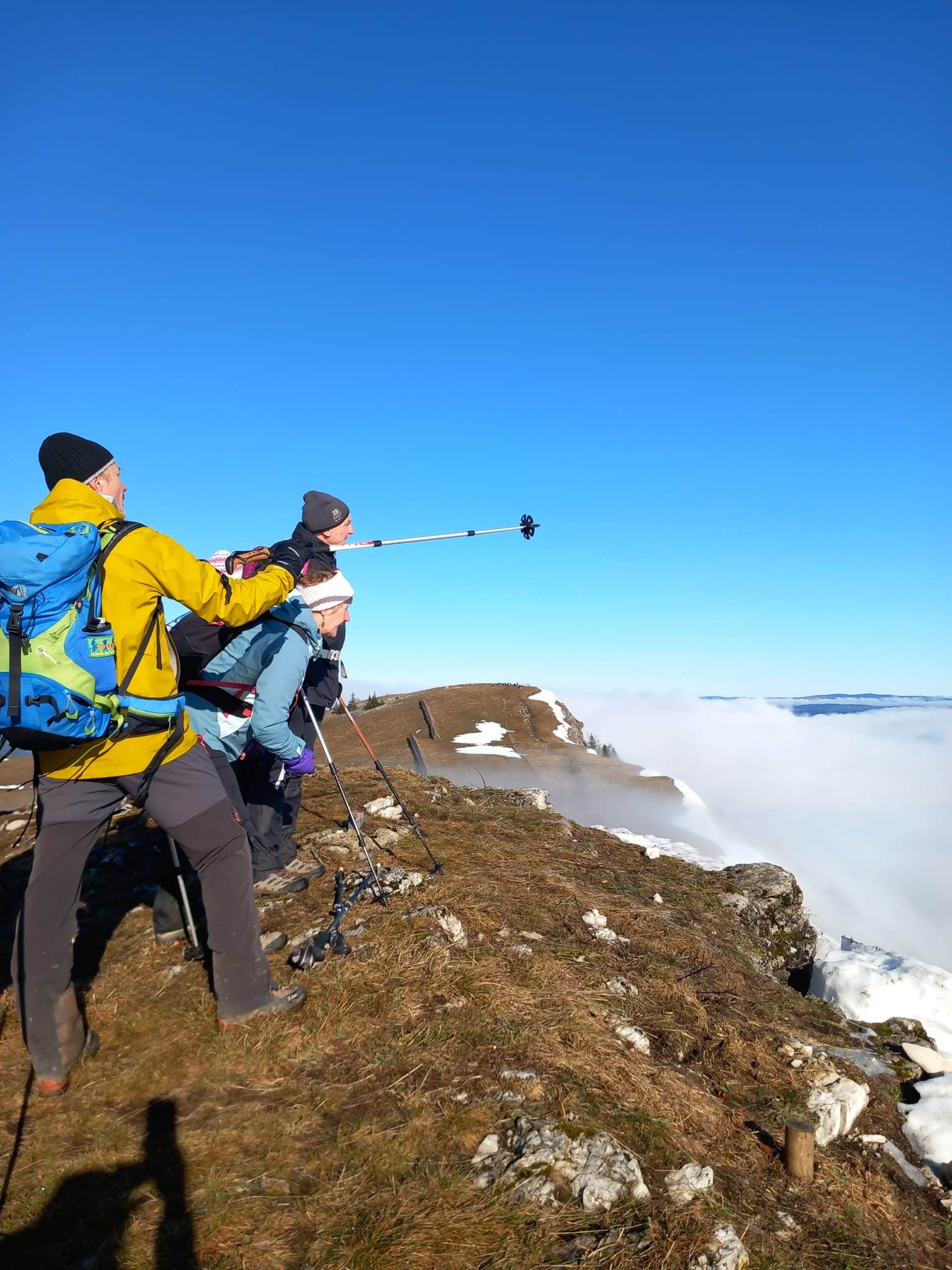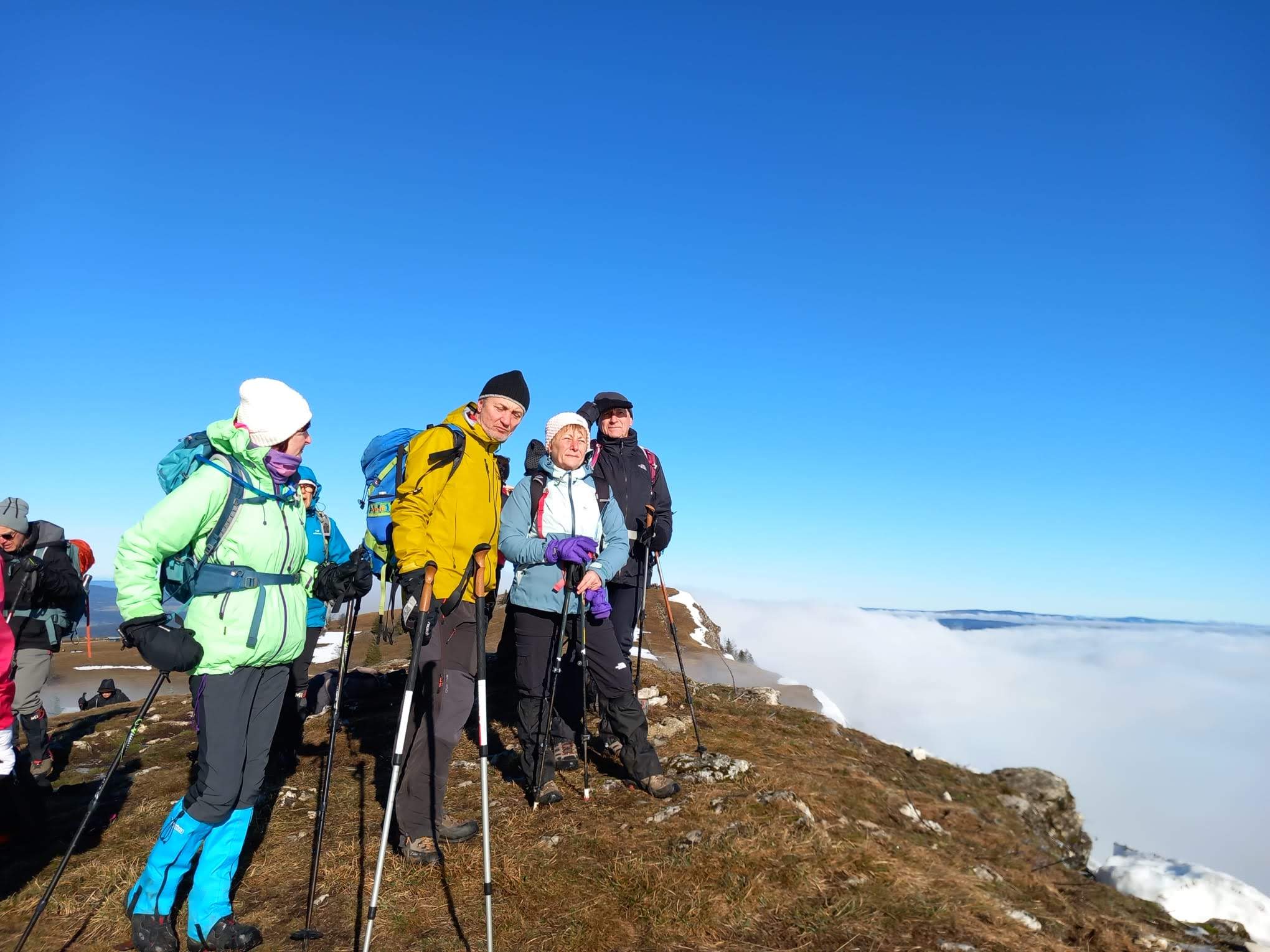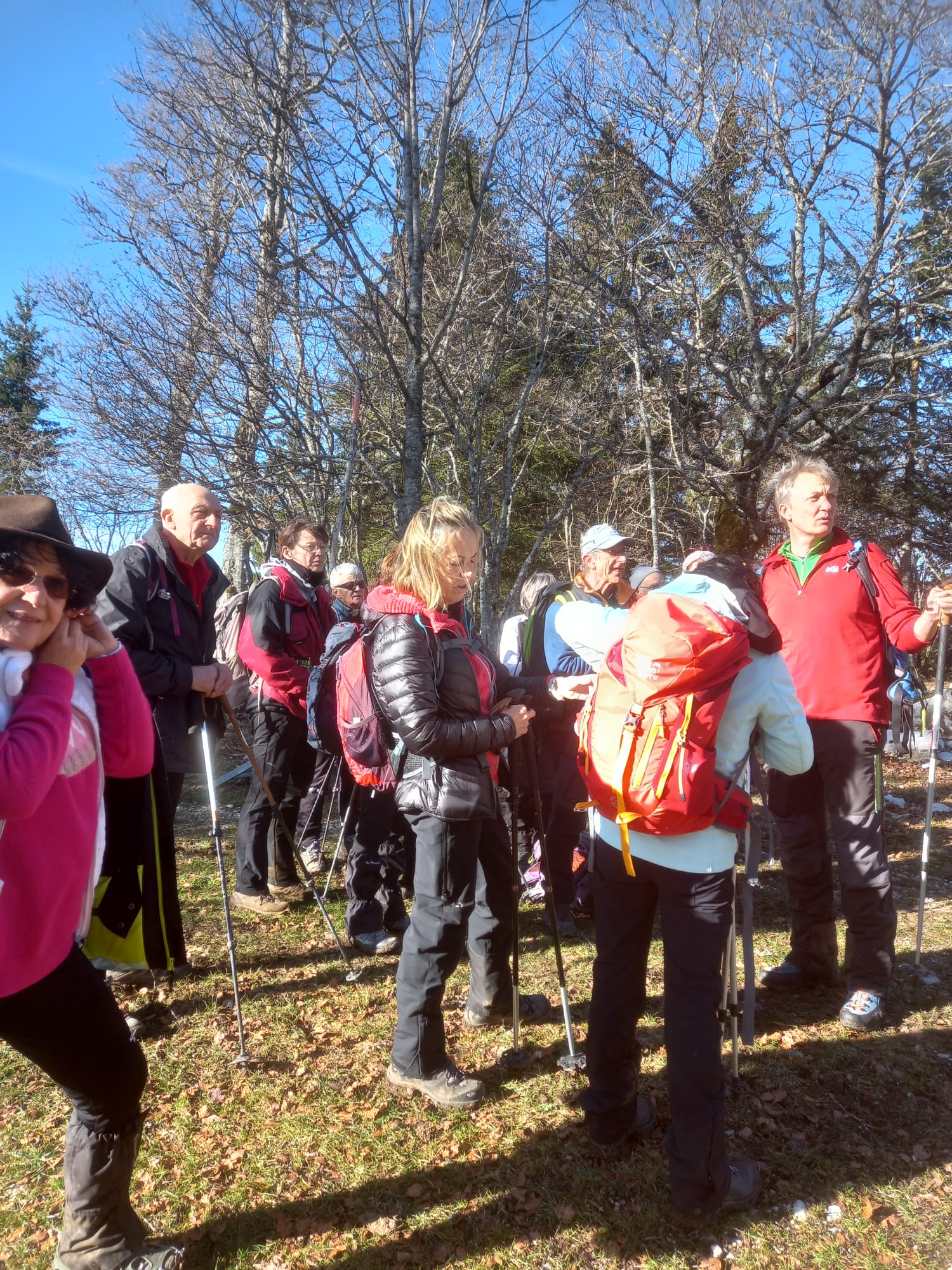 Encadrés par deux accompagnateurs de moyenne montagne et répartis en deux groupes de niveau, chacun a pu apprécié ainsi les randonnées agrémentées des explications sur la nature. Si la première demi journée n’a pas pu nous révéler les paysages du haut de la station de Métabief gâché par un petit crachin et un épais brouillard, les splendeurs des alpes versant suisse , se sont révélés le samedi en cheminant sur le Mont d’or près de Vallorbe, laissant apercevoir par ailleurs toute la chaine du Jura ,la dôle et notre crêt de la neige. Plus prêt la dent de Vaulion nous faisait signe.