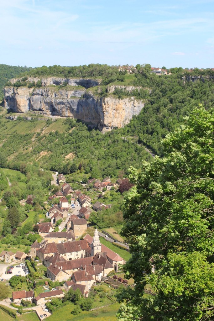 Partis du bas du village, nous avons atteint le village de Grange sur Baume avec son panorama sur les toits de Baume et sur son abbaye. Après avoir fait le tour de la reculée nous avons atteint la falaise au pied de laquelle sort la rivière qui plonge dans la vallée par la cascade des Dards. puis nous avons rejoint le point de départ en longeant la rivière « La Seille » après avoir visité en partie l’abbaye.