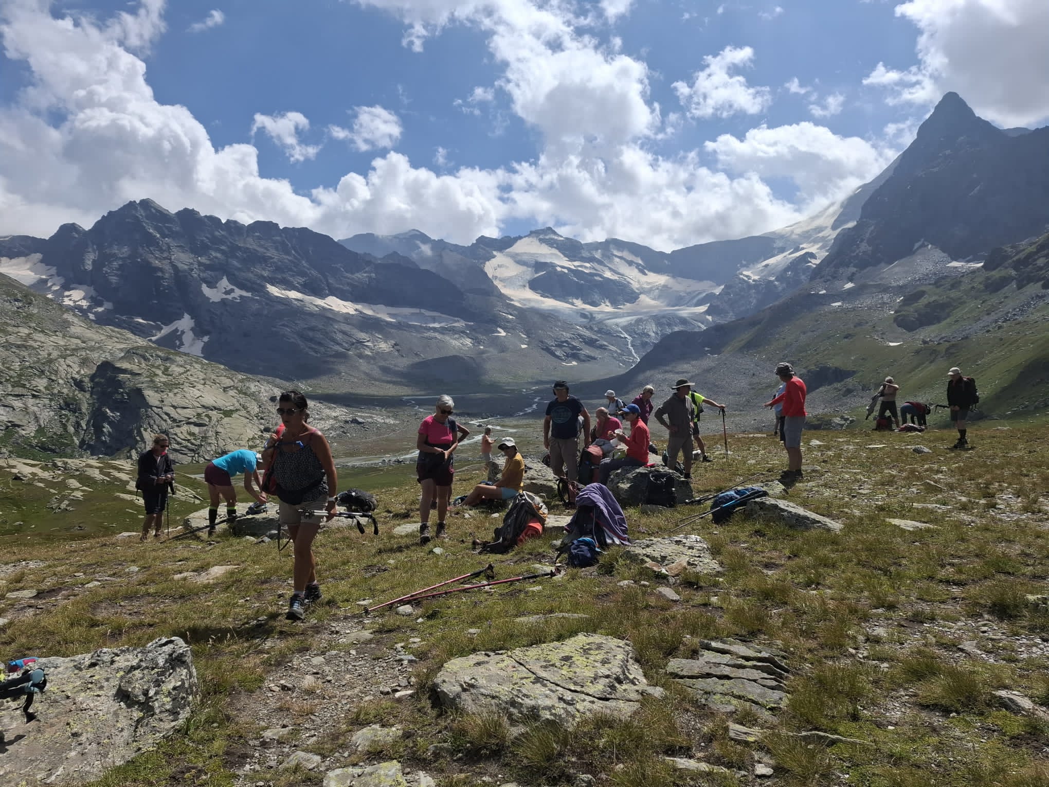 Le 2ème jour,, partis du village de Bonneval sur Arc situé au pied du col de l’Iseran, les randonneurs ont atteint le hameau de l’Ecot , puis certains ont cheminé le long de l’Arc vers le hameau de la Dhuis et les autres ont gravi les pentes pour atteindre le refuge des Evettes avec un splendide panorama sur les glaciers du cirque des Evettes et les sommets marquant la frontière avec L’Italie.