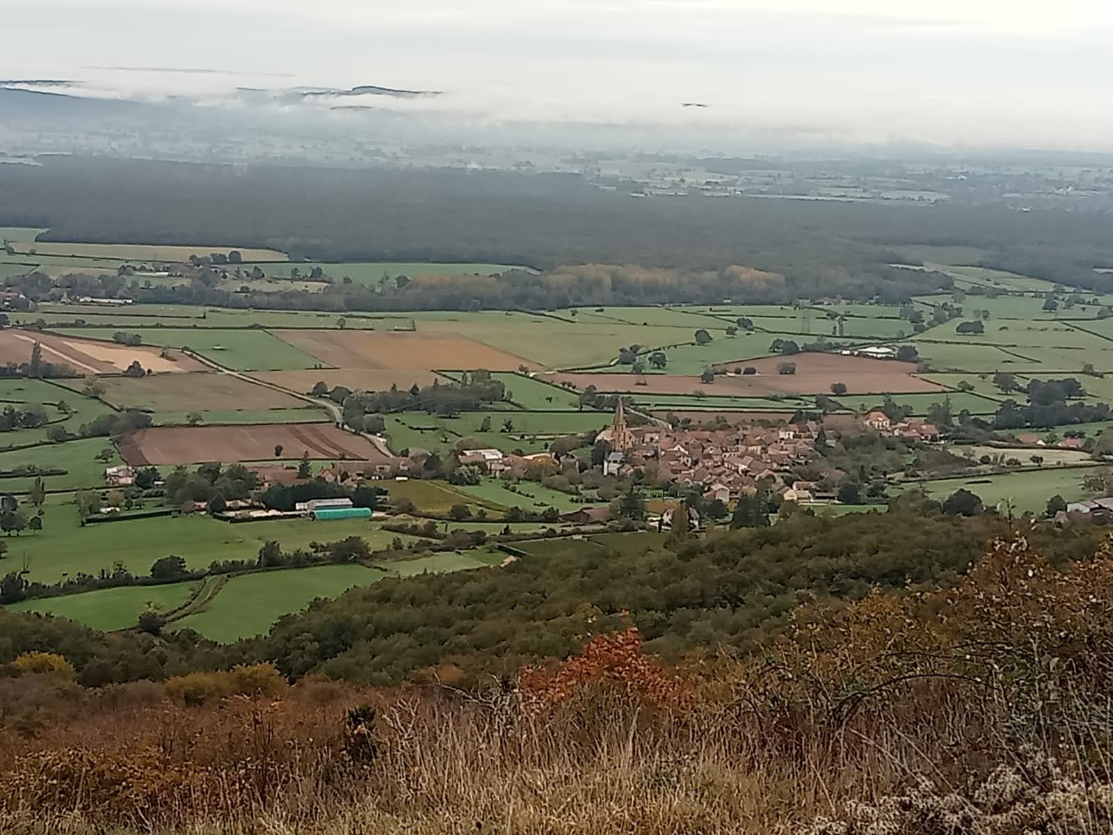 Les randonneurs ont effectué une boucle de 16km en suivant tout d’abord le GR 76A chemin de Compostelle (voie de Cluny) dominant la vallée de la Grosne, affluent de la Saône avec en toile de fond la Côte Chalonnaise et les monts du Charolais. Puis ils sont descendus dans la vallée et sont remontés pour atteindre le village médiéval de Brancion, avec sa chapelle du XIème et ses maisons de pierres dorées teintées de rouge.
