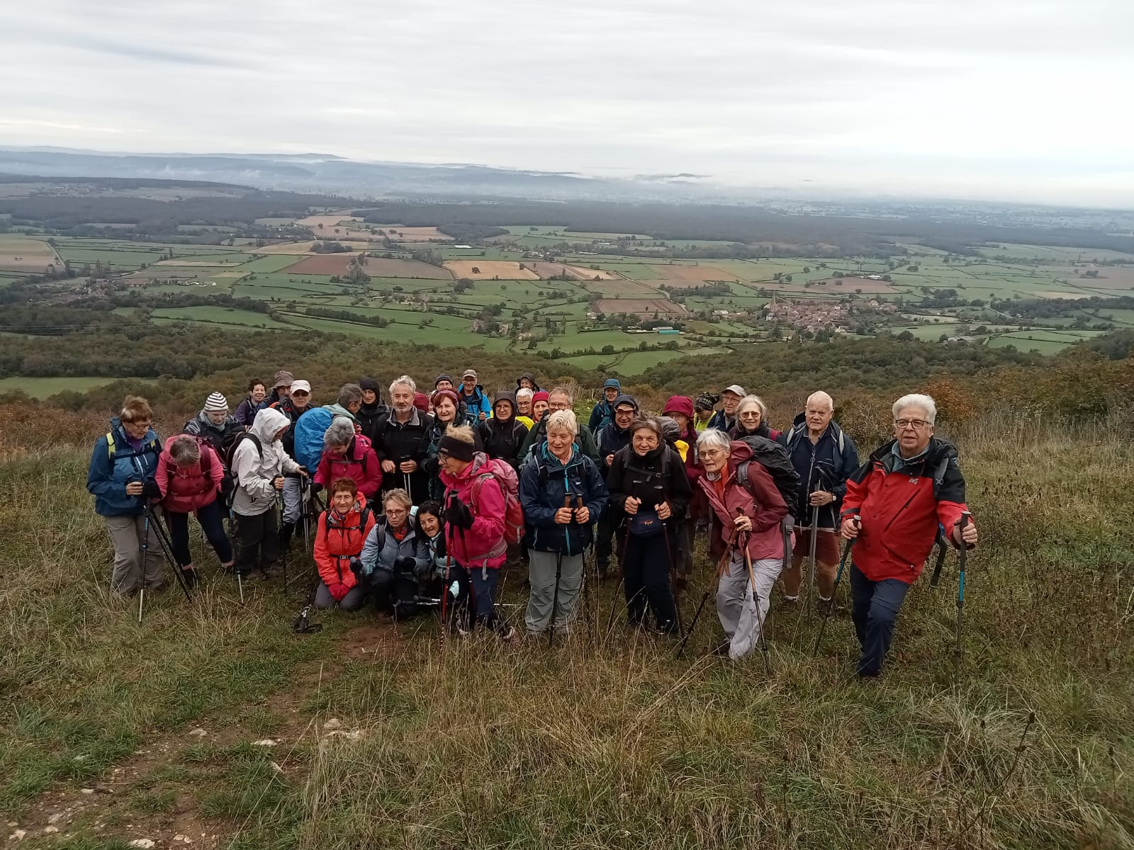 Les randonneurs ont effectué une boucle de 16km en suivant tout d’abord le GR 76A chemin de Compostelle (voie de Cluny) dominant la vallée de la Grosne, affluent de la Saône avec en toile de fond la Côte Chalonnaise et les monts du Charolais. Puis ils sont descendus dans la vallée et sont remontés pour atteindre le village médiéval de Brancion, avec sa chapelle du XIème et ses maisons de pierres dorées teintées de rouge.