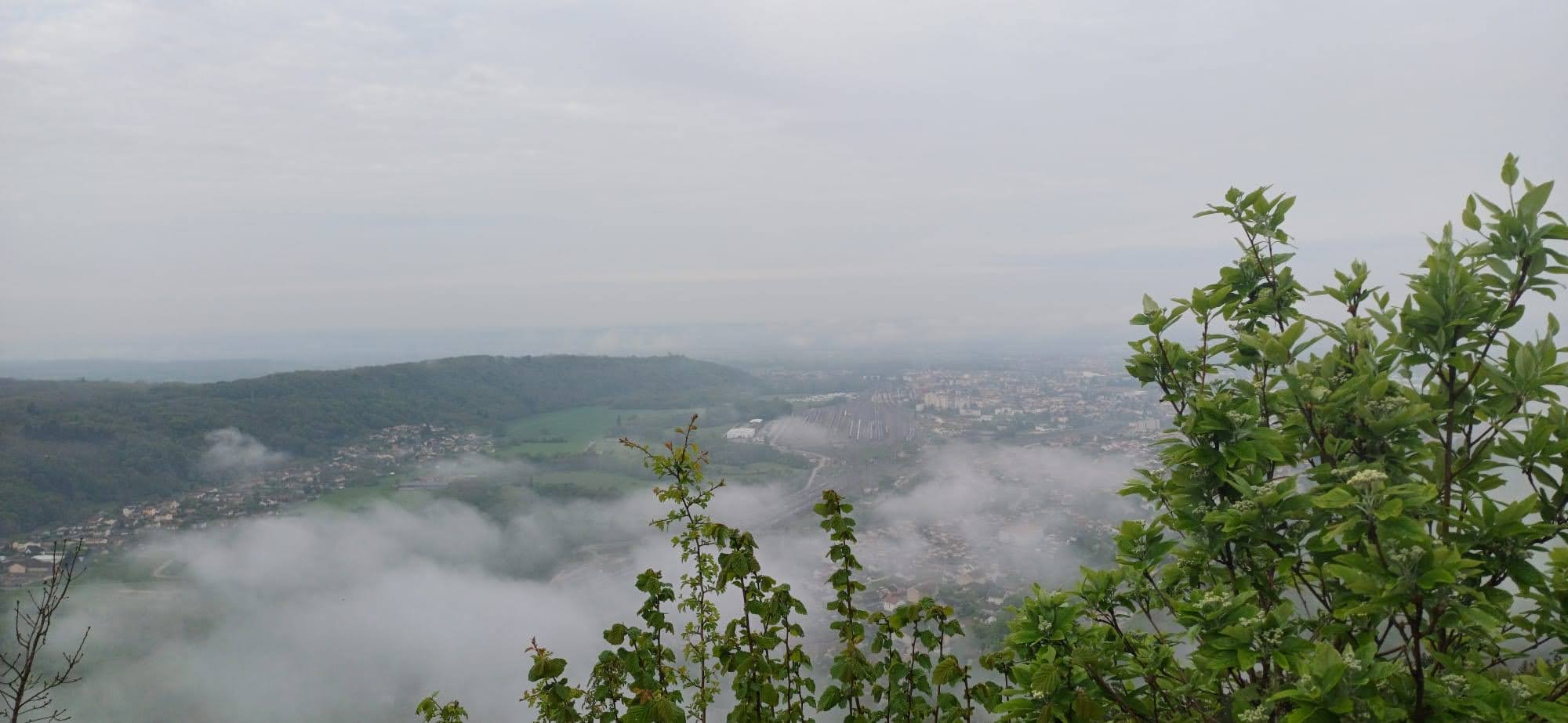 Vues sur AMBERIEU, BETTANT la tour de ST DENIS en BUGEY au loin, voilée