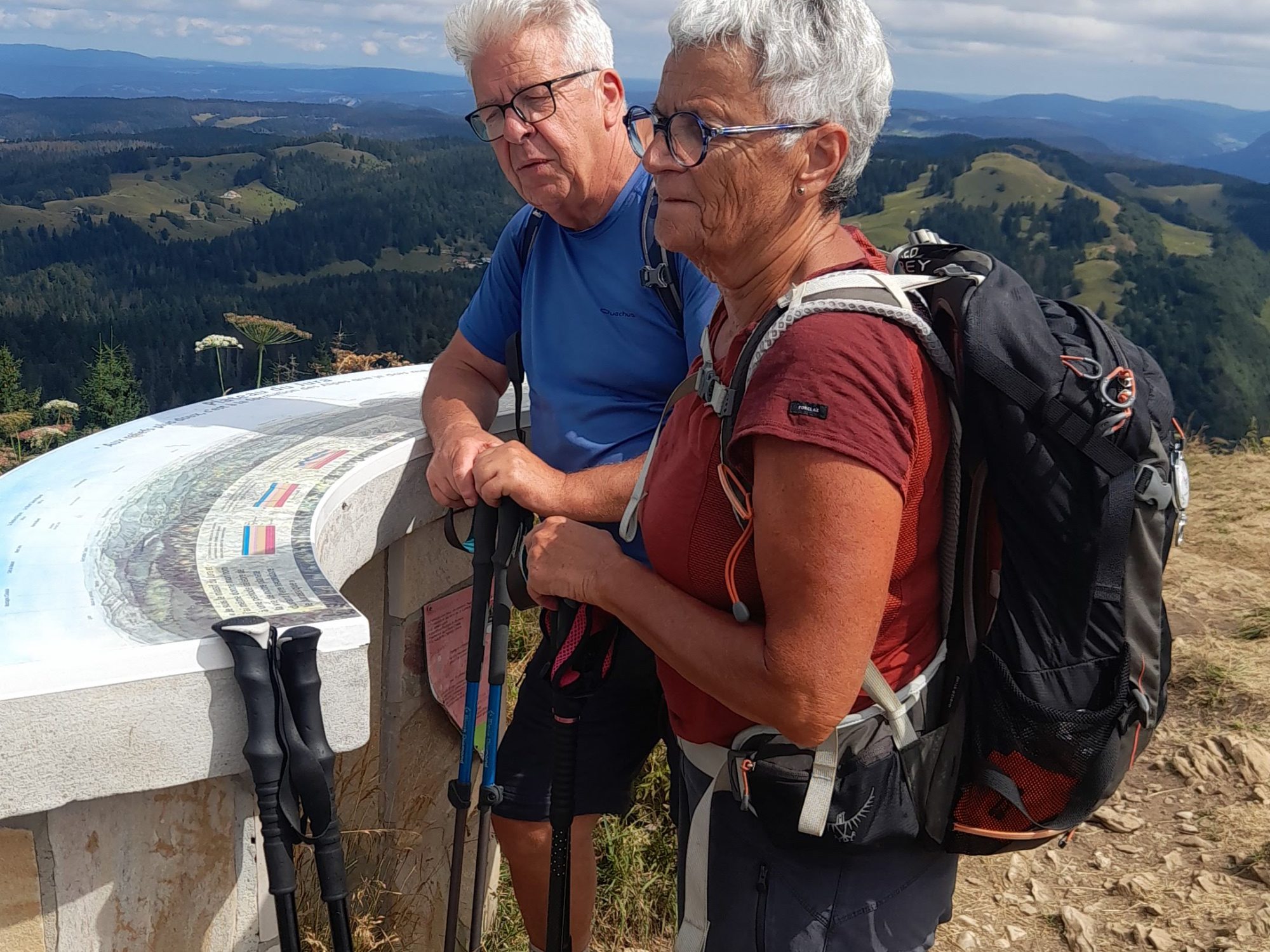 35 randonneurs au départ de La Pesse pour une randonnée jurassienne à travers combes et forêt d’épicéas avec l’ascension des 3 sommets du secteur, le Crêt du Nerbier, le Crêt du Merle et pour certains le Crêt de Chalam. Picnique à l’abri sur le site de La Borne au lion.