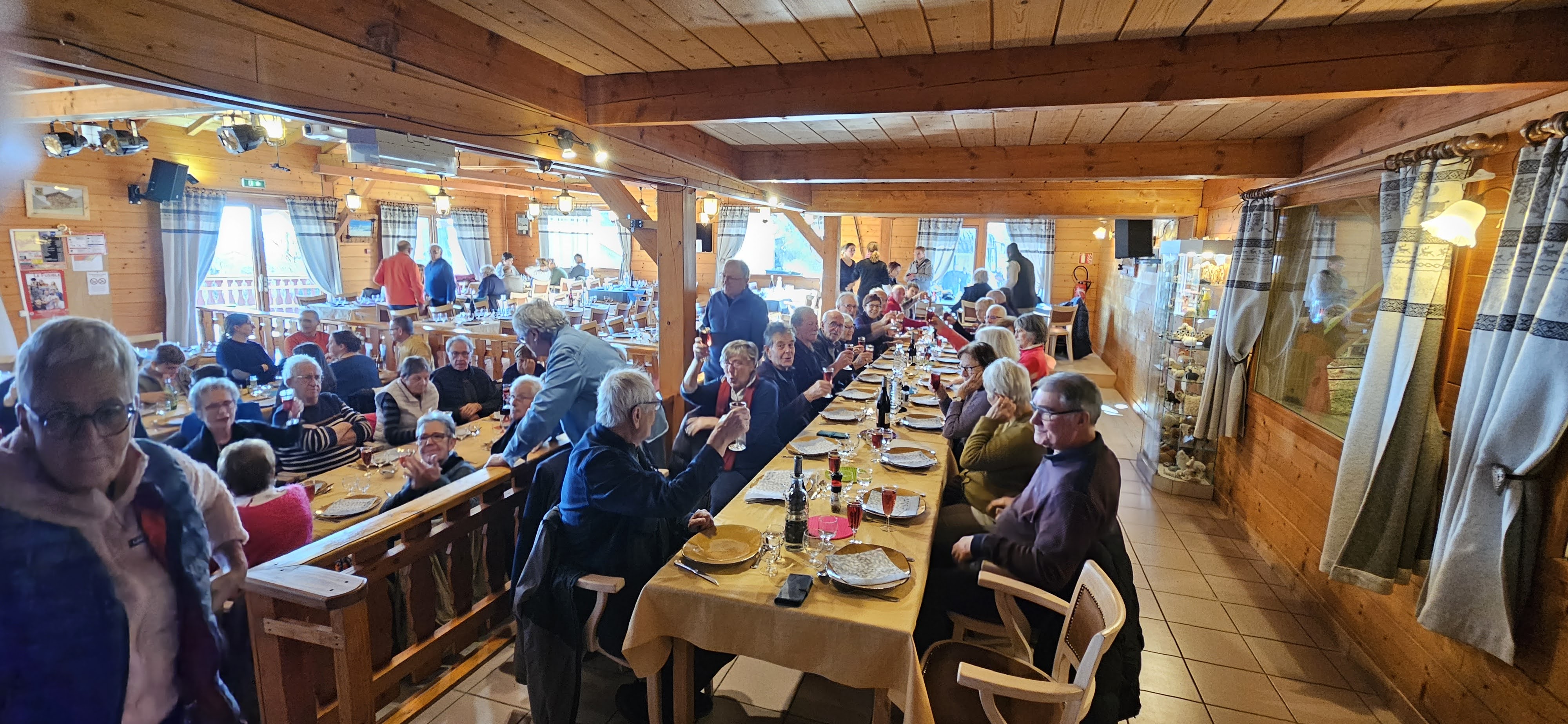 Le déjeuner a eu lieu à la bergerie du Pré Velar à Thoiry où fut servi un repas proposant l’agneau de la ferme ou du poulet. Une pièce de théatre par la troupe des « Baladins » compléta cette journée conviviale.
