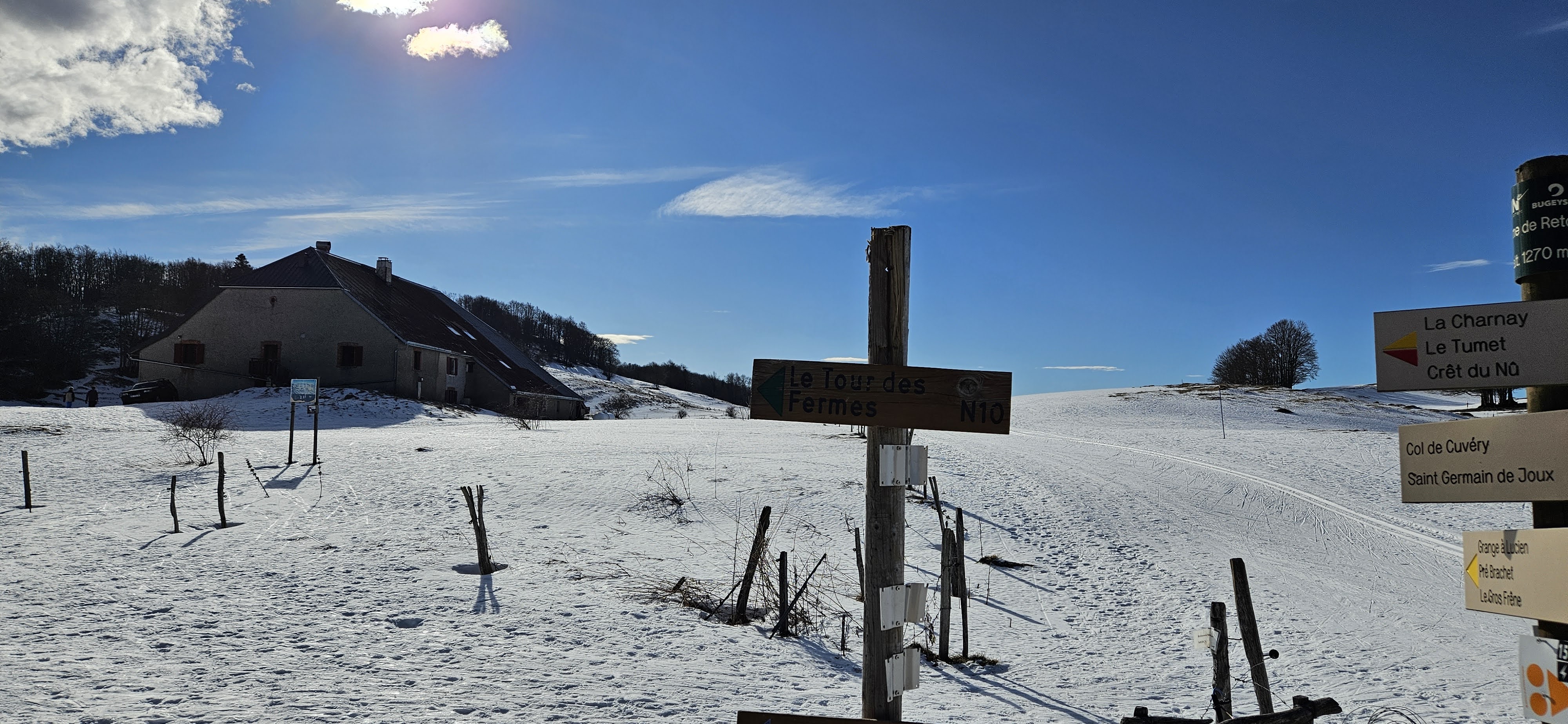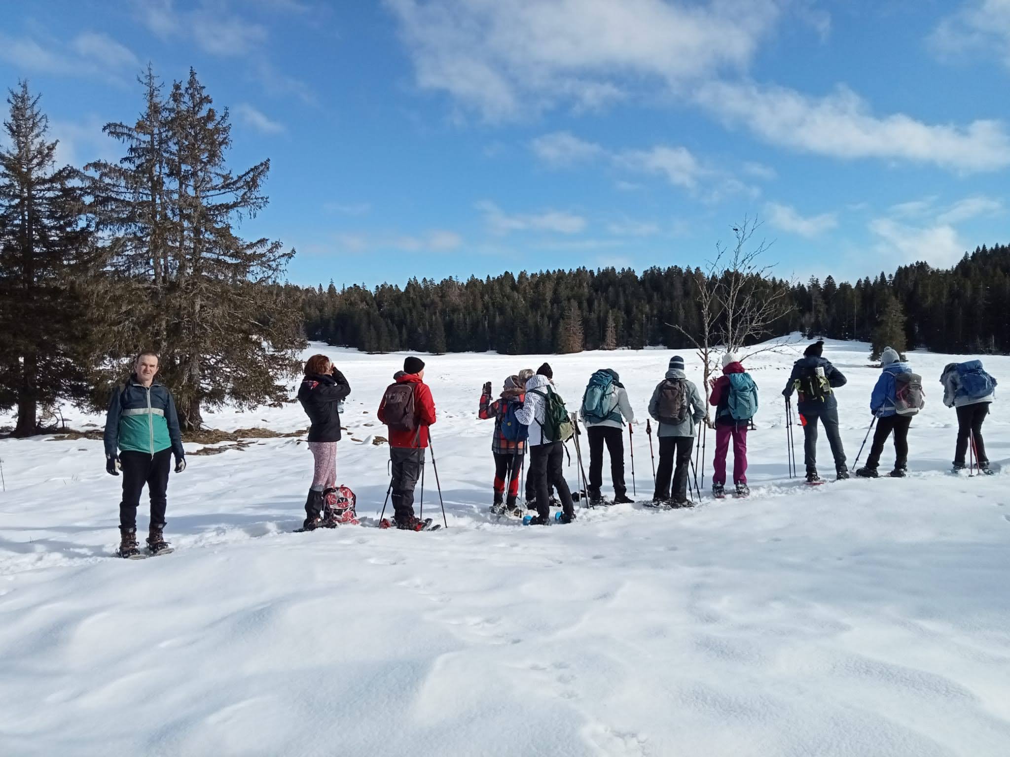 Nous avons commencé avec 2 randonnées raquettes dans le Bugey en profitant d’une neige qui devient rare au fil des années et avec une sortie de proximité à Salavre.
