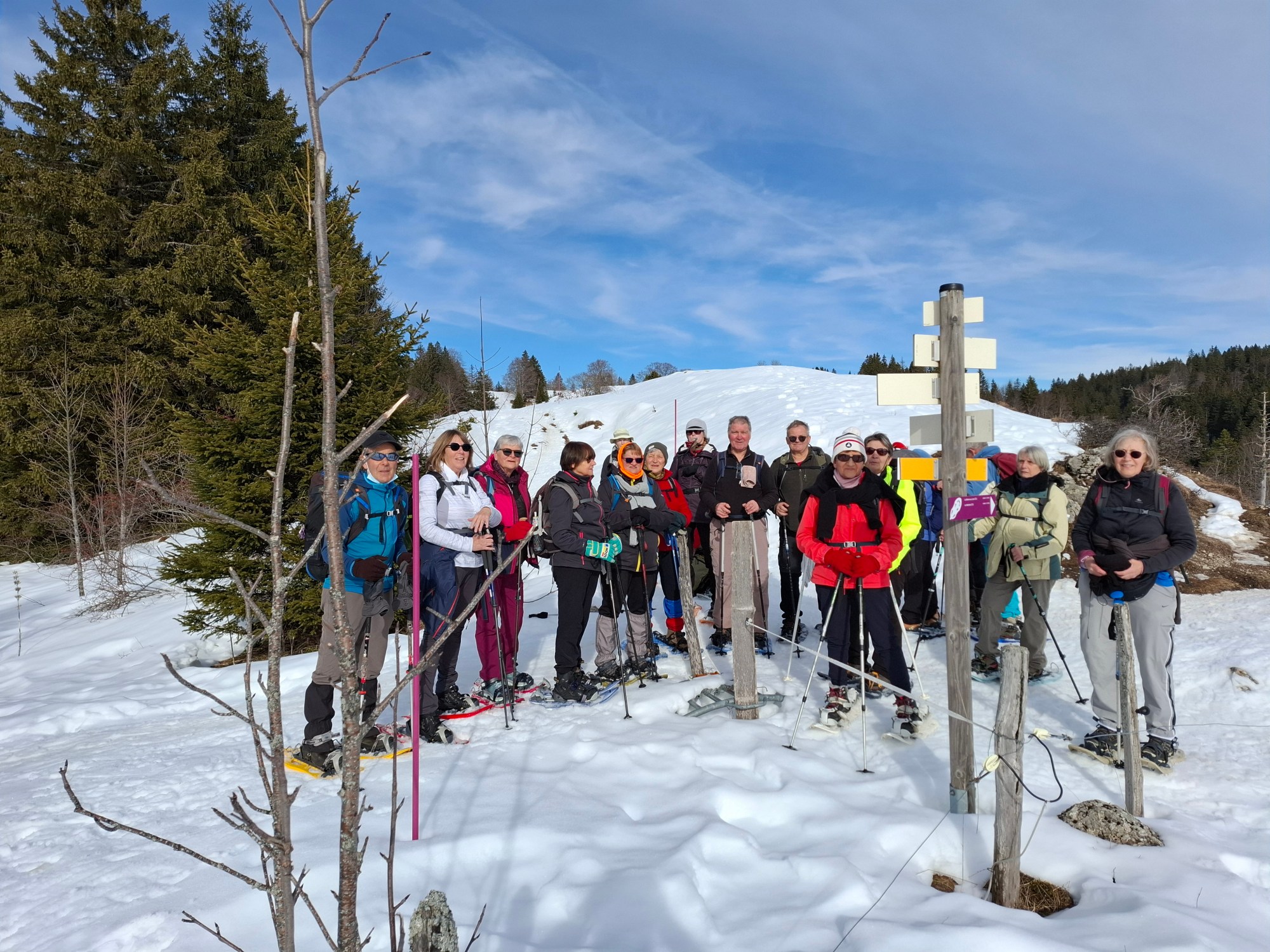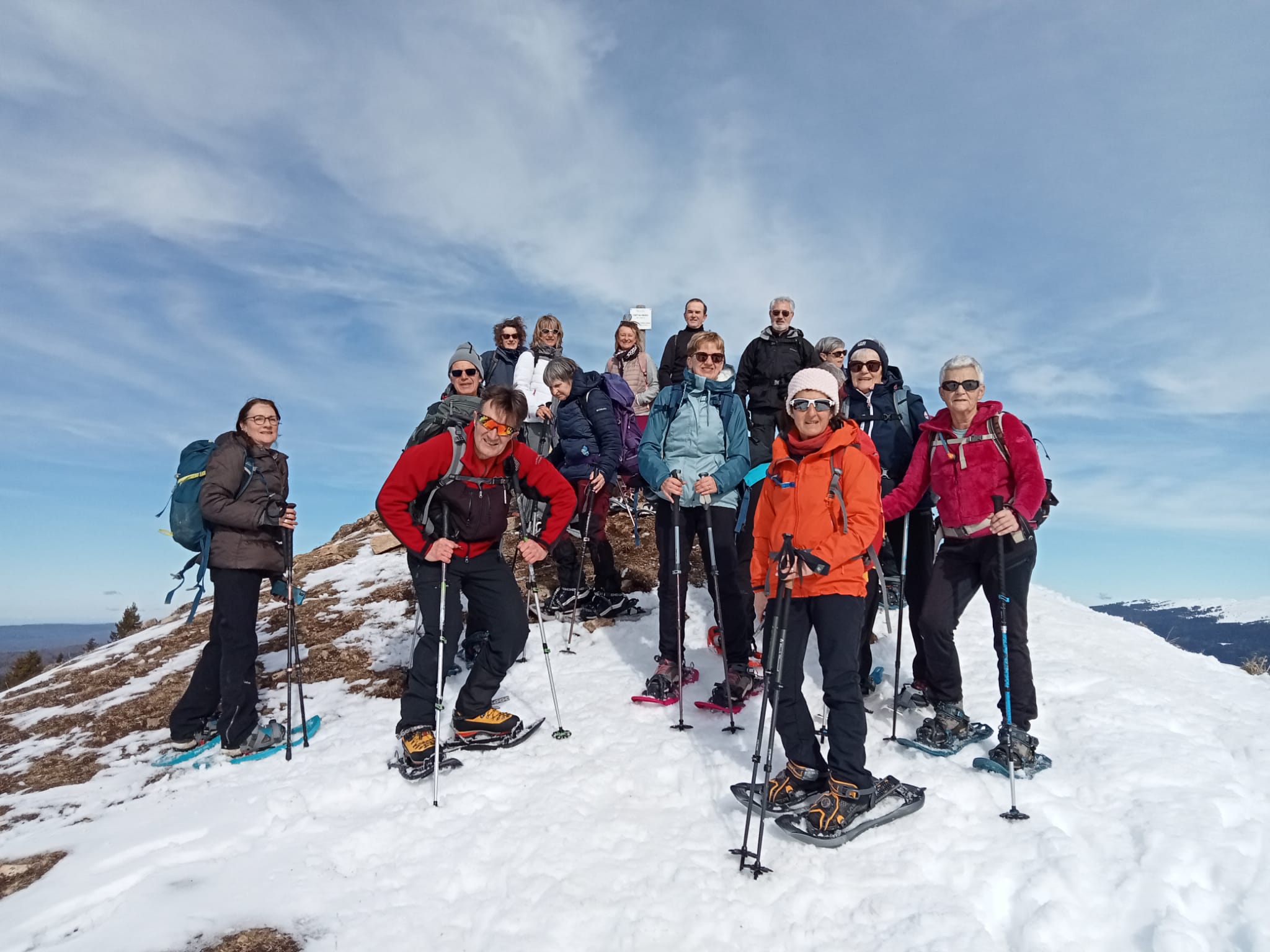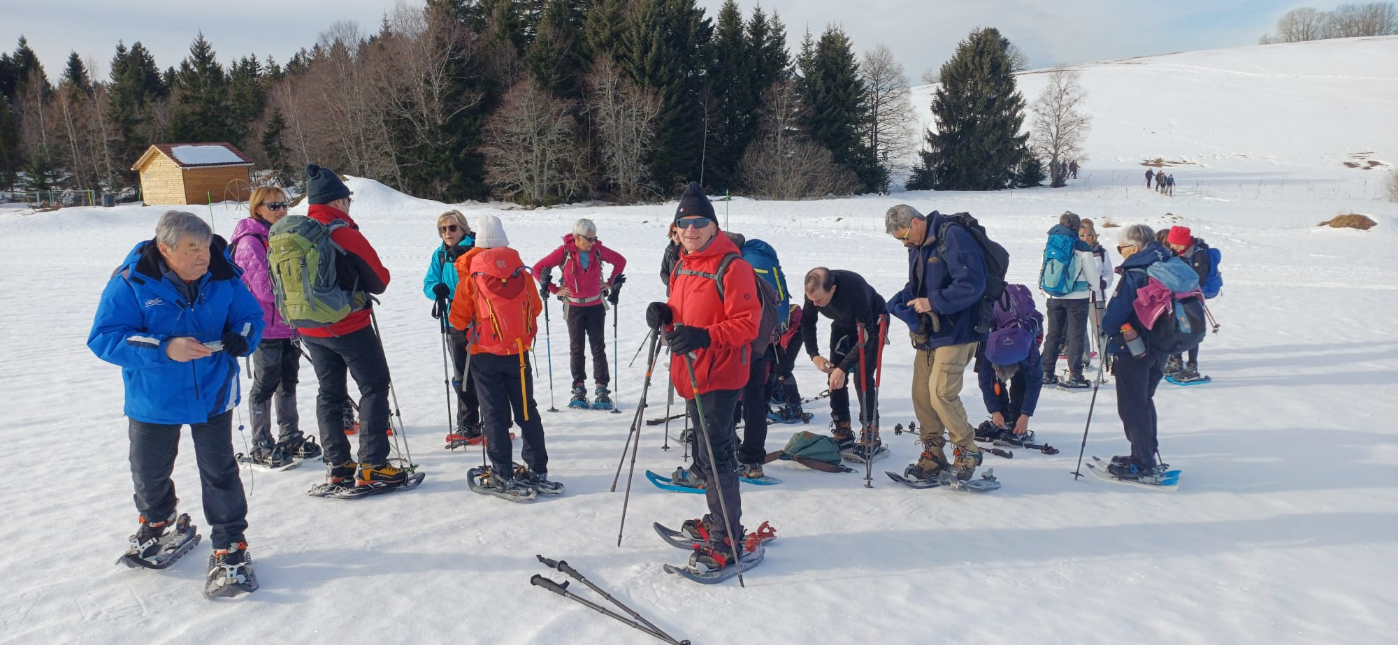 42 randonneurs au départ de La Pesse divisés en 2 groupes sont partis en direction de la Borne aux Lions. Neige et soleil étaient au rendez-vous.