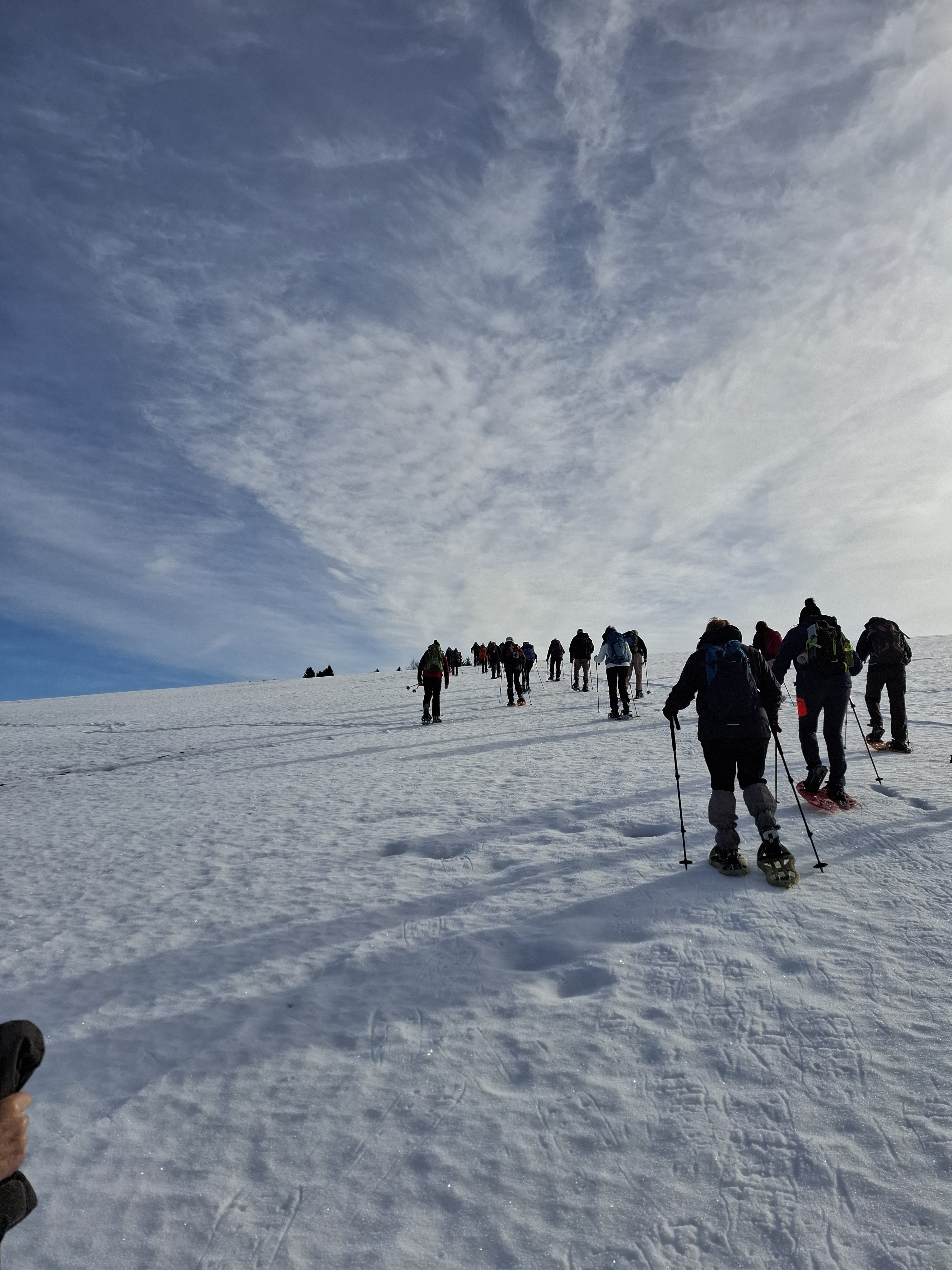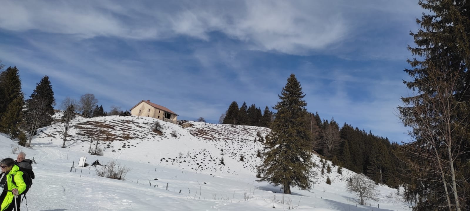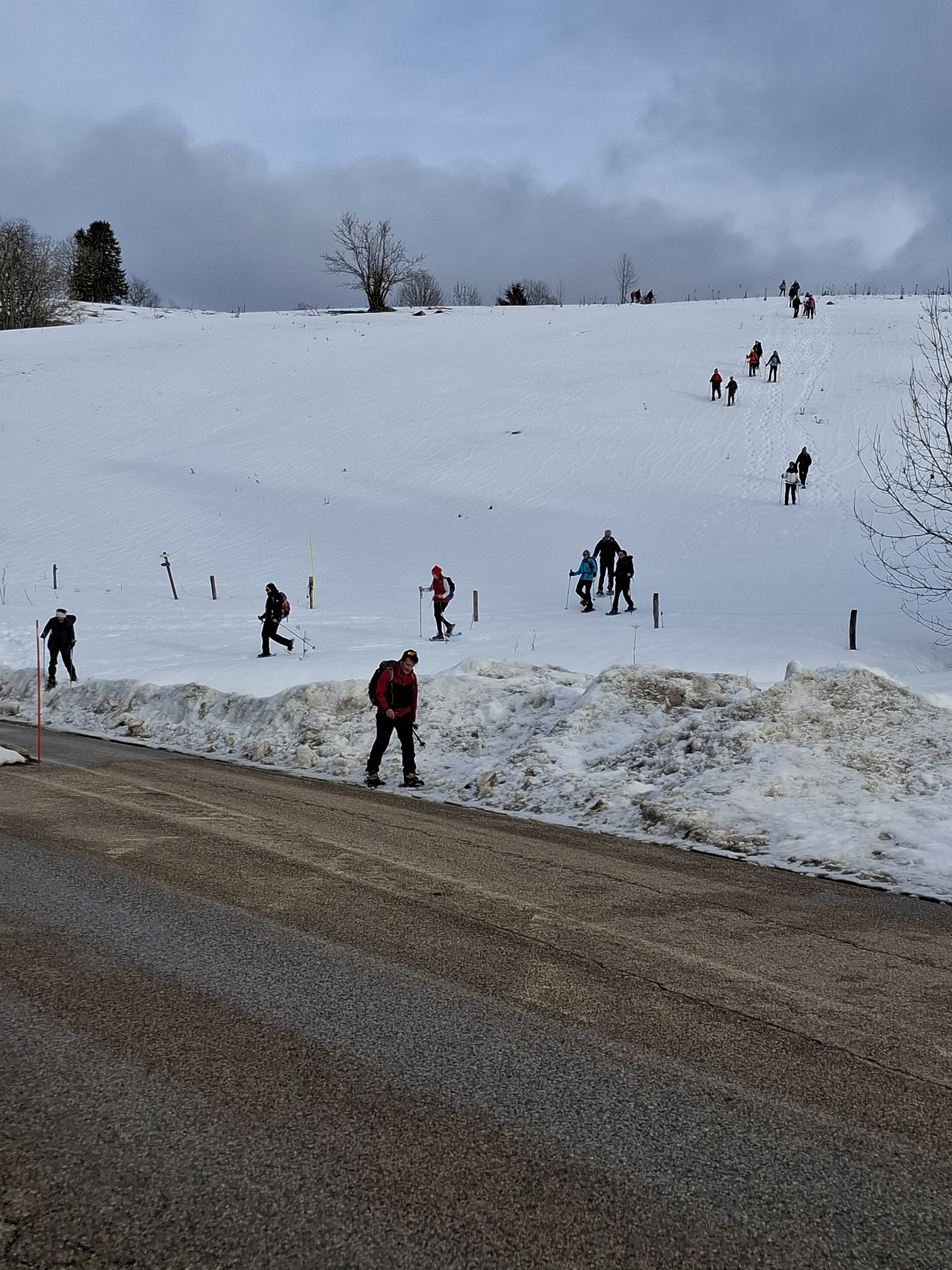 42 randonneurs au départ de La Pesse divisés en 2 groupes sont partis en direction de la Borne aux Lions. Neige et soleil étaient au rendez-vous.