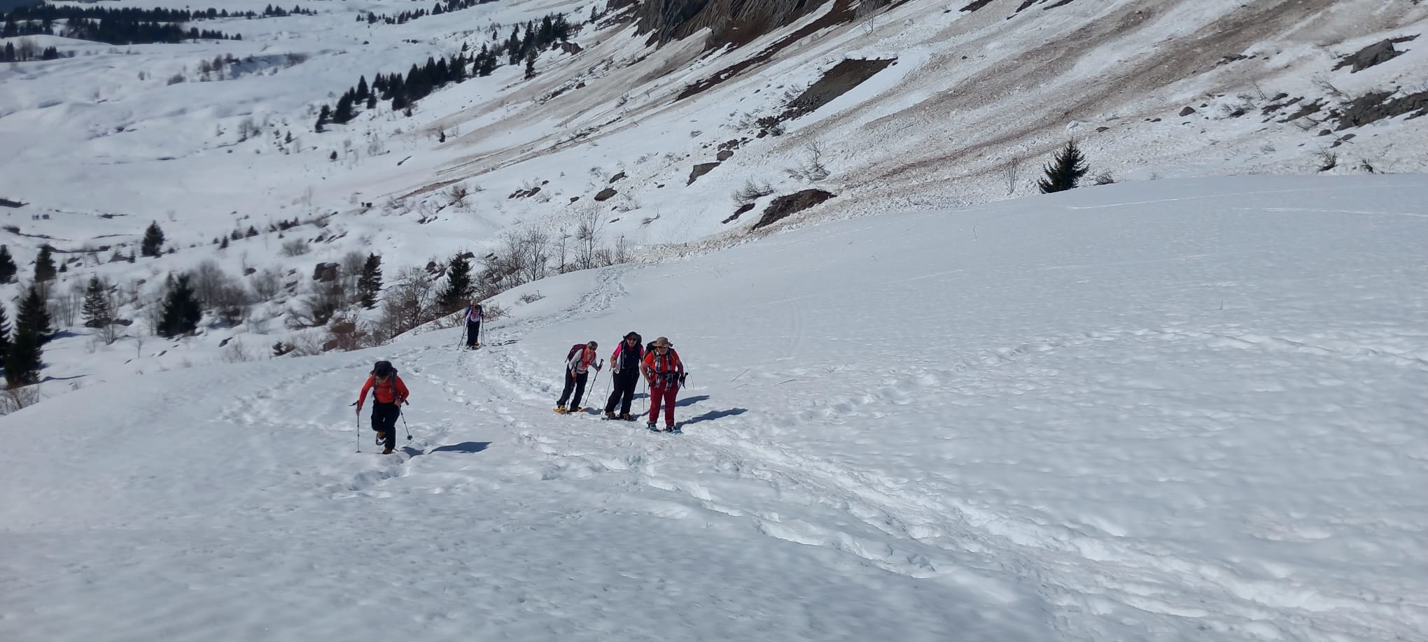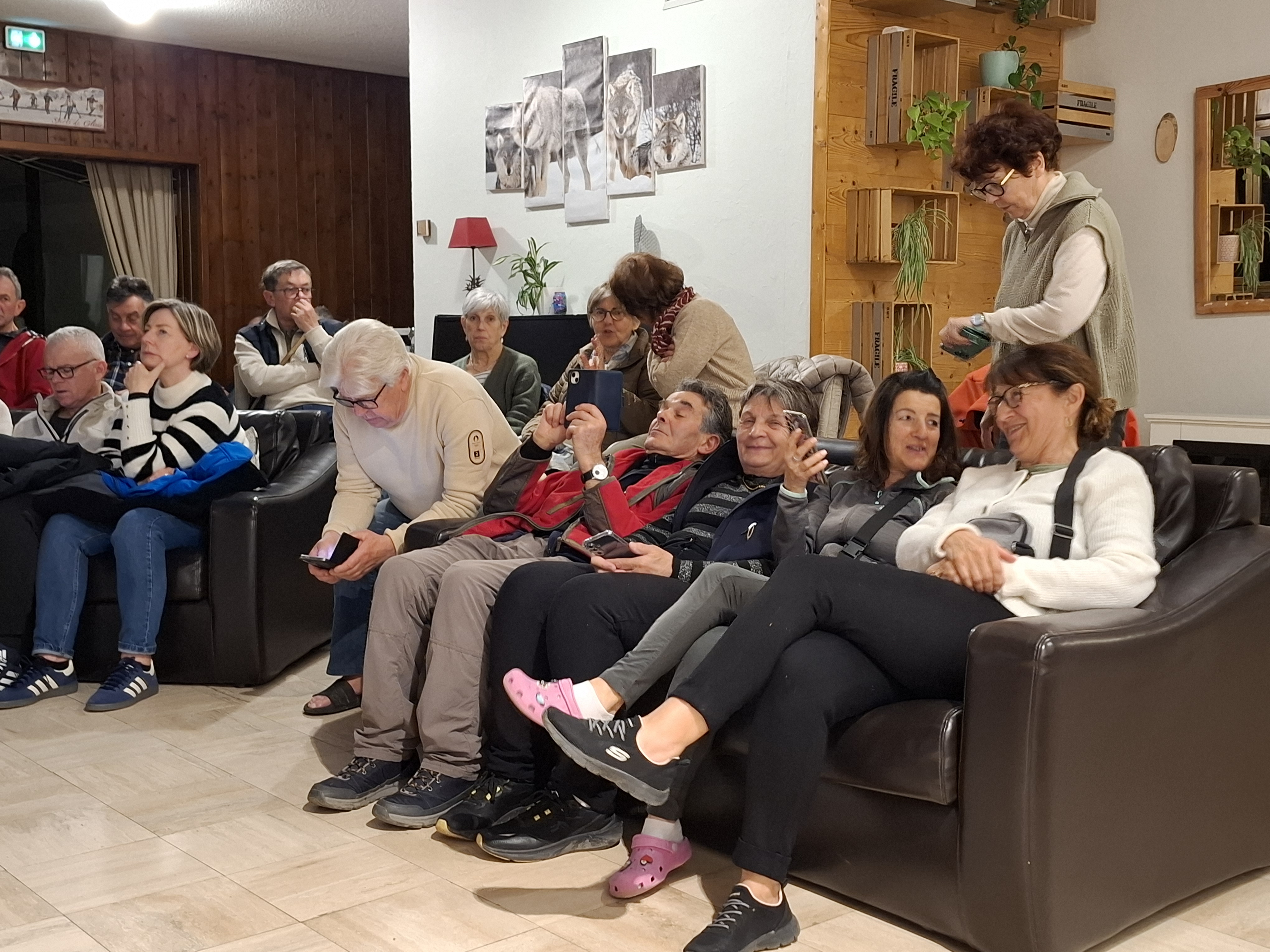 Le 1er jour, devant le manque de neige, une randonnée pédestre a eu lieu au départ du Centre sur les contreforts du mont Lachat. Après 350m de dénivelée positive les randonneurs ont rejoint le village pour un apéritif convivial avant le repas sous forme de buffet.